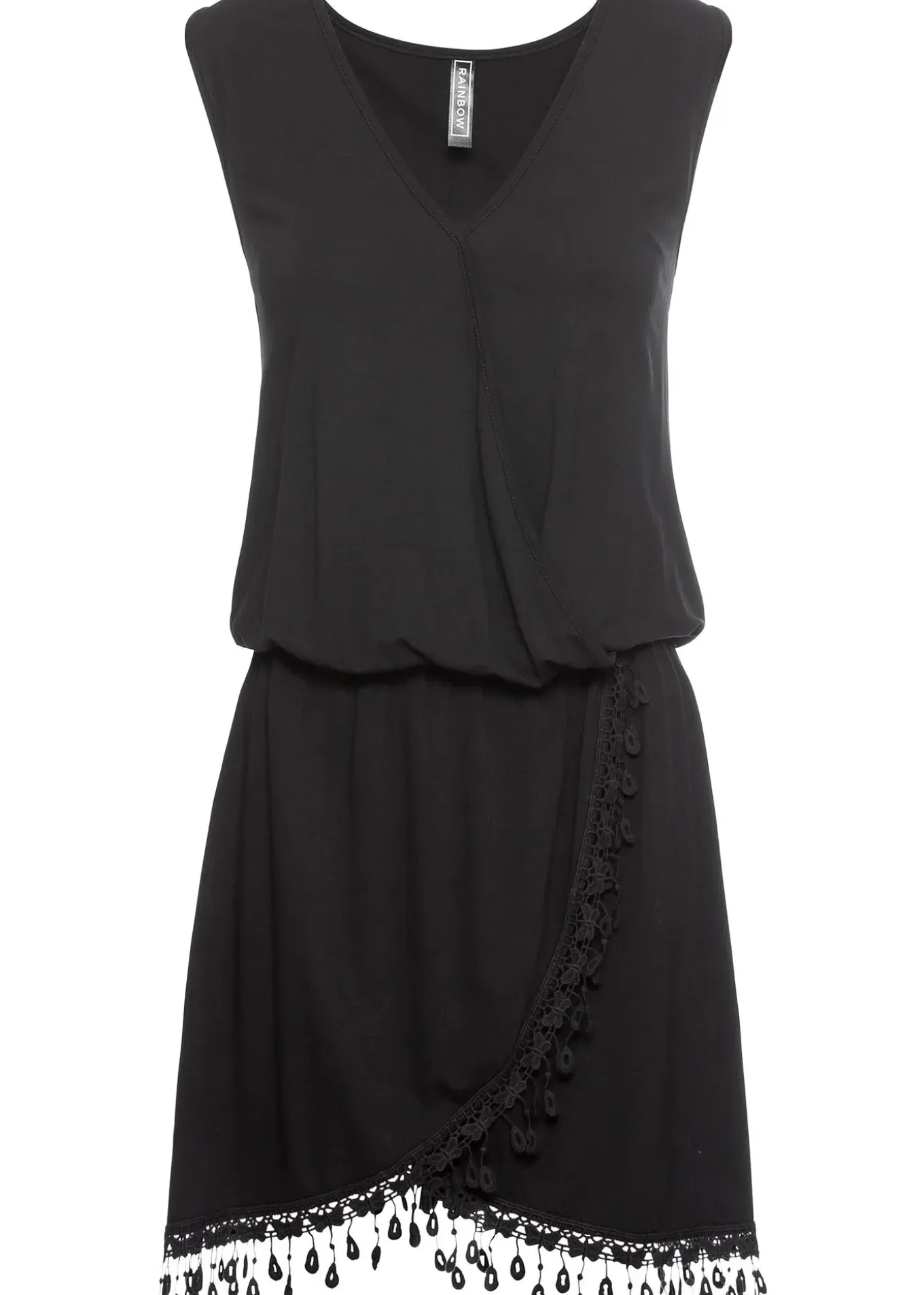 Robe style portefeuille avec finitions dentelle sur la jupe.