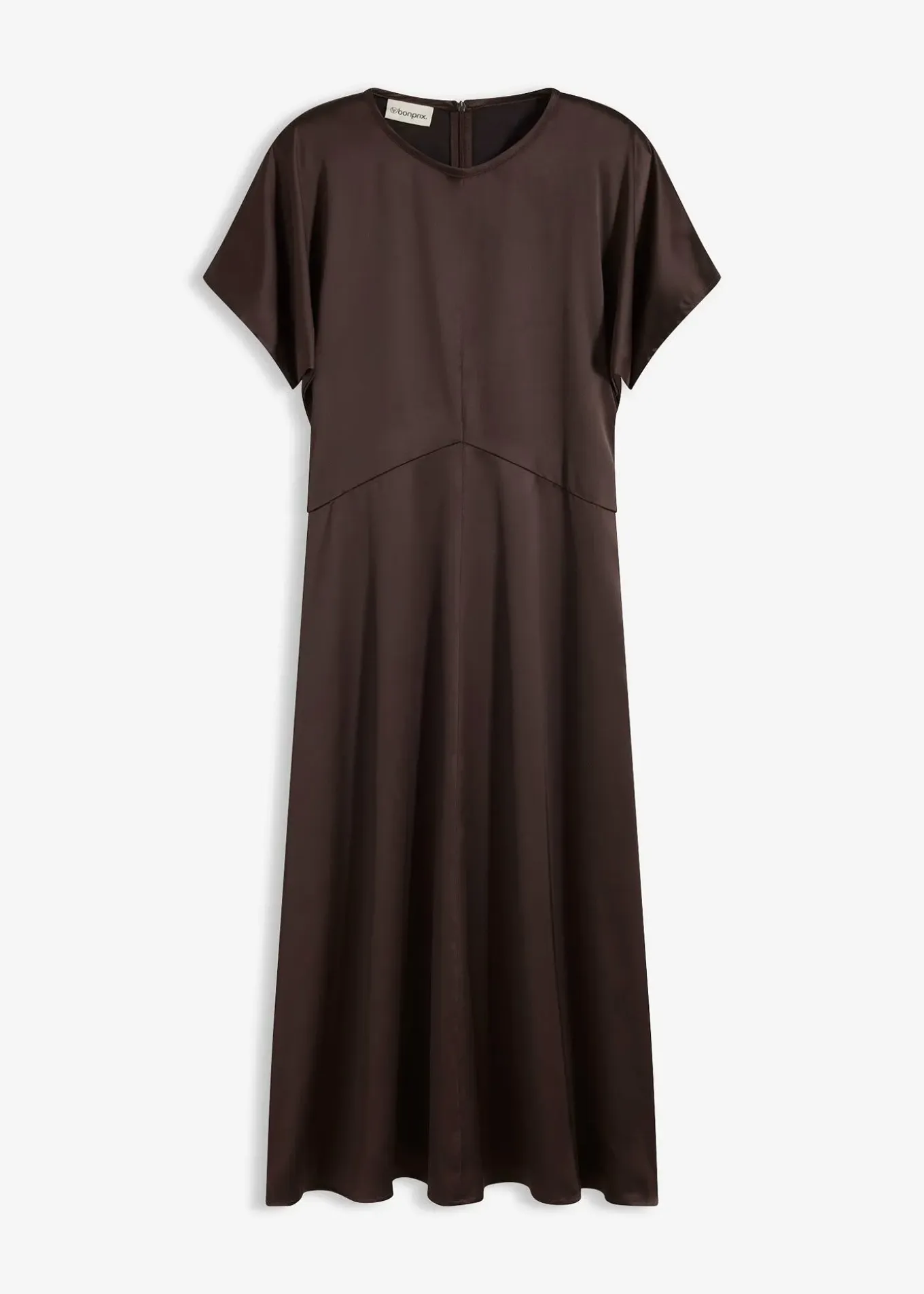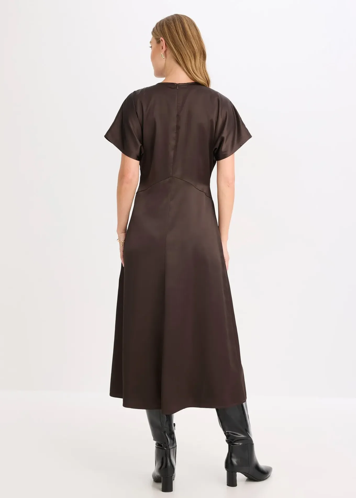 Robe midi et cintrée en satin fluide avec des manches larges