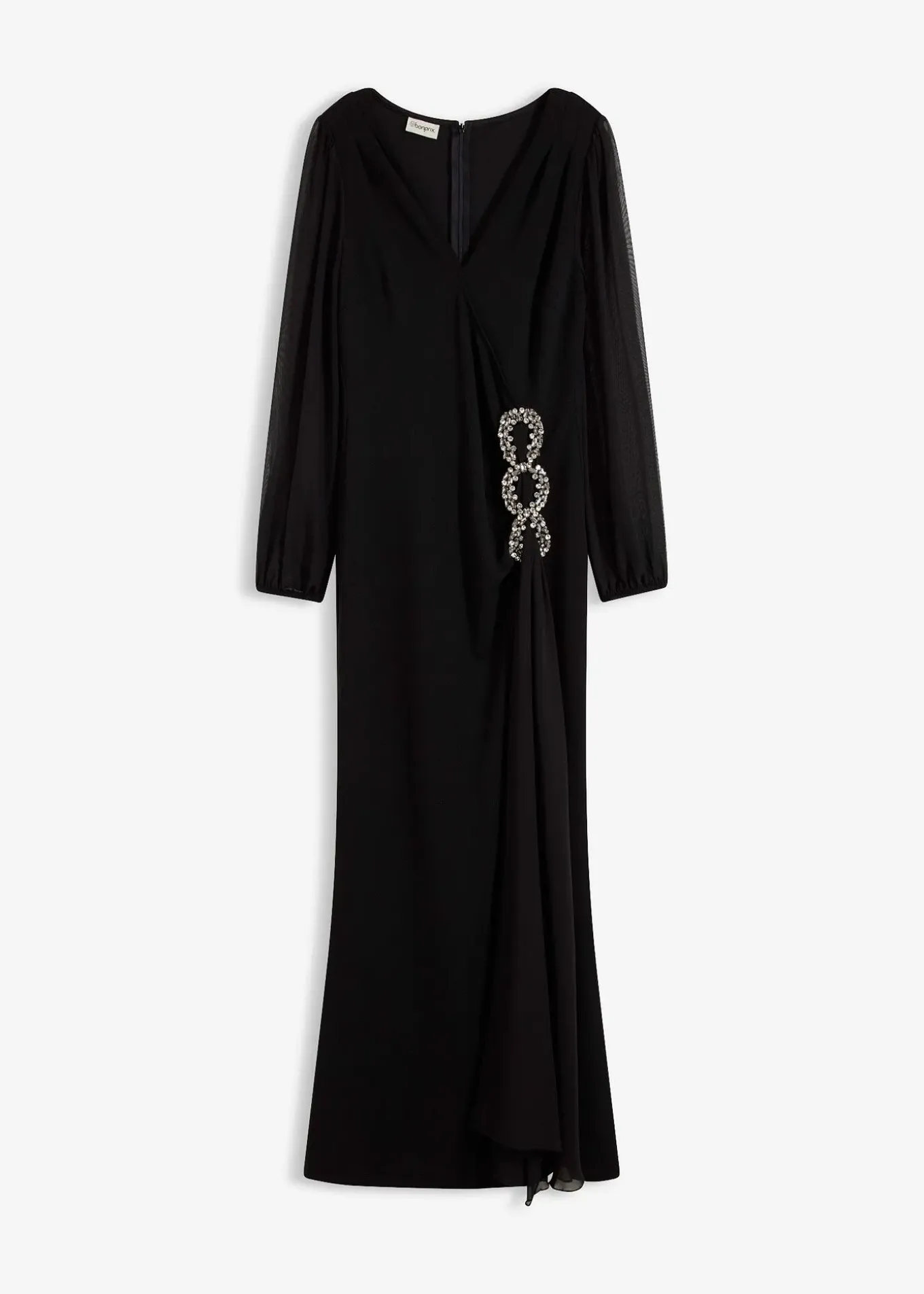 Moderne et féminine : robe de soirée à manches ballon et drapé, ornée d’une application en strass