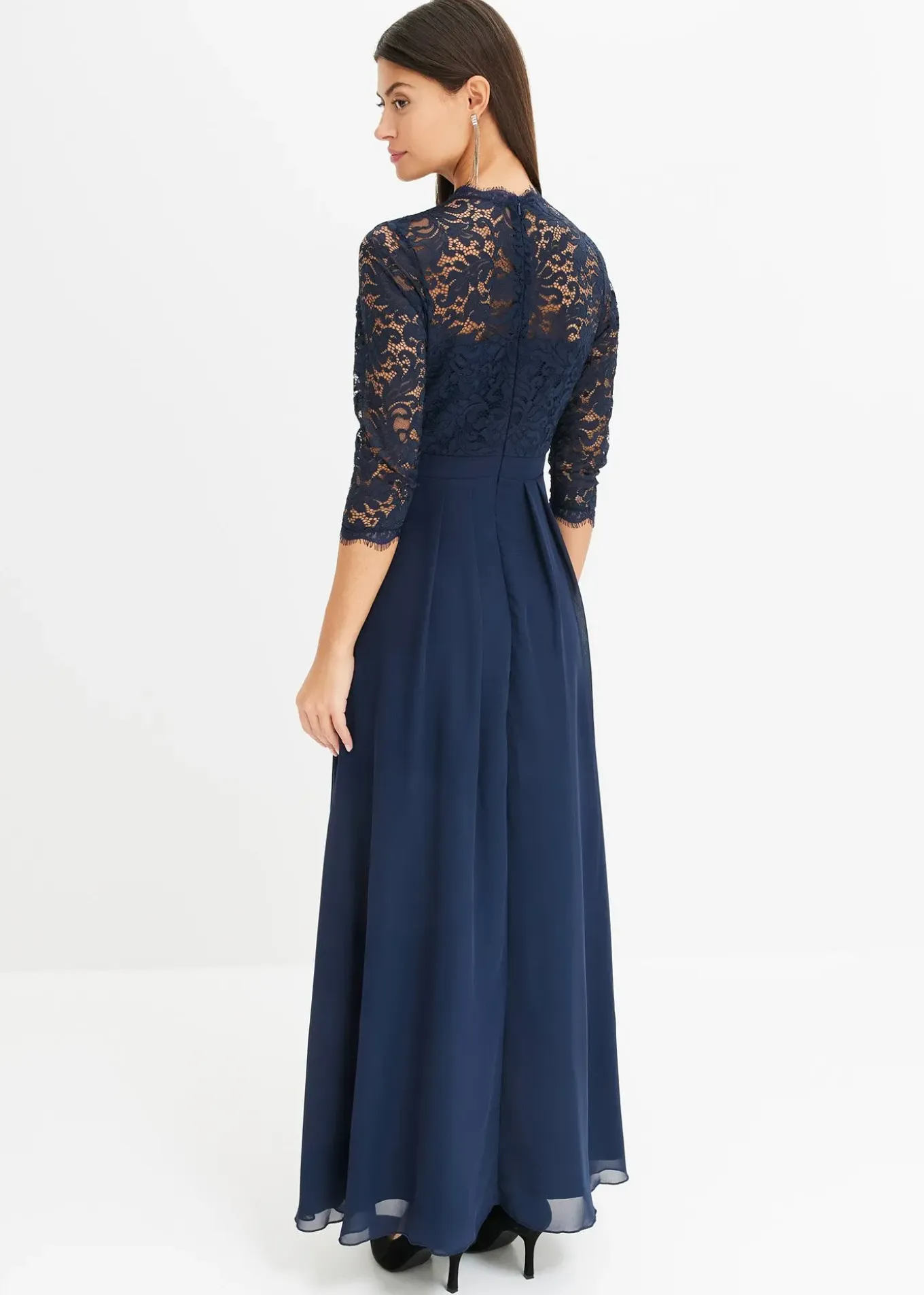Ravissante robe de soirée avec dentelle sur le haut, jupe en crêpe texturé et jupe superposée en fine mousseline.