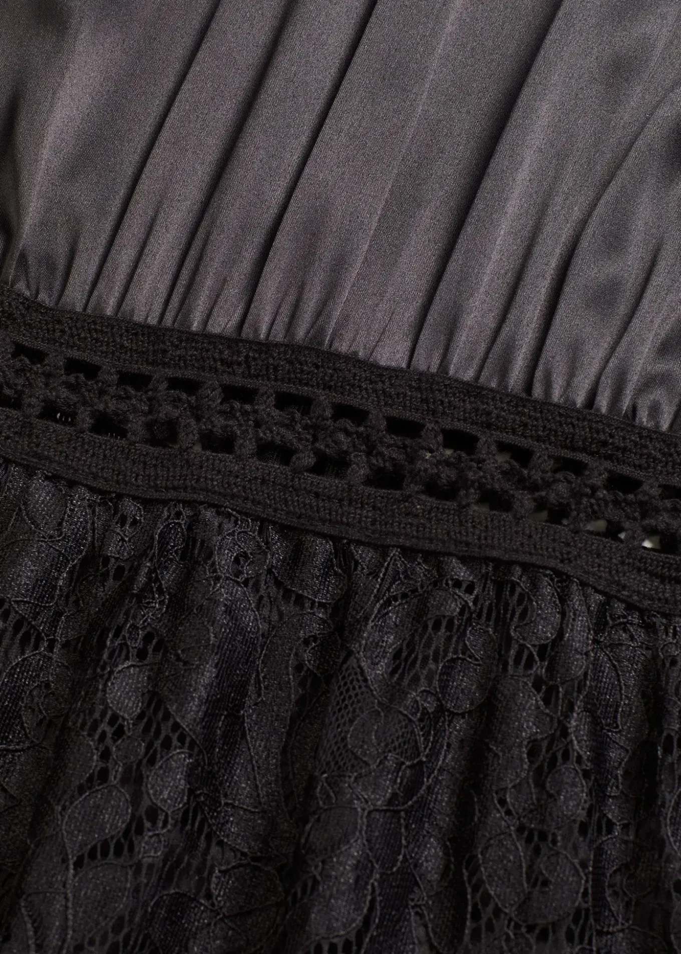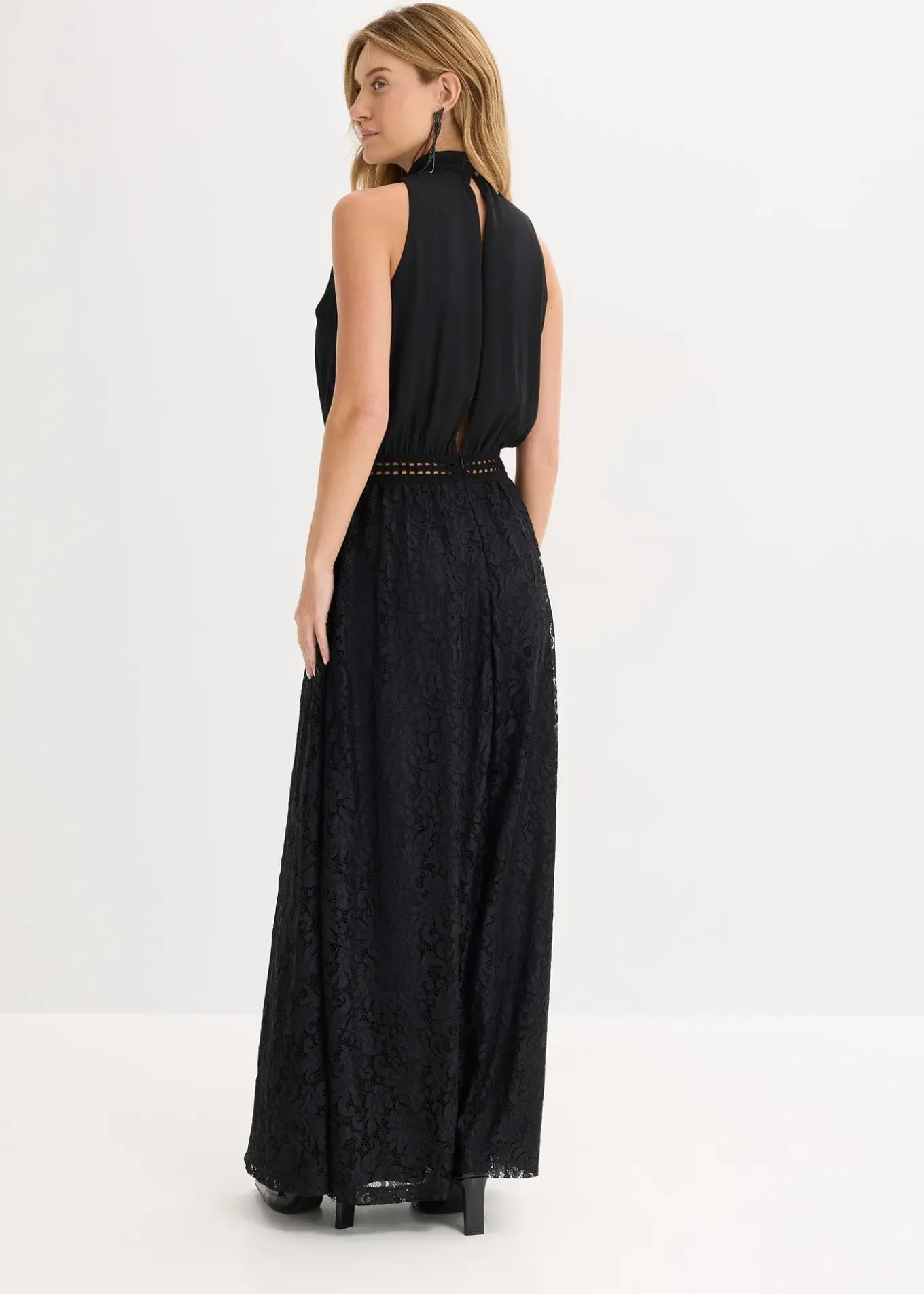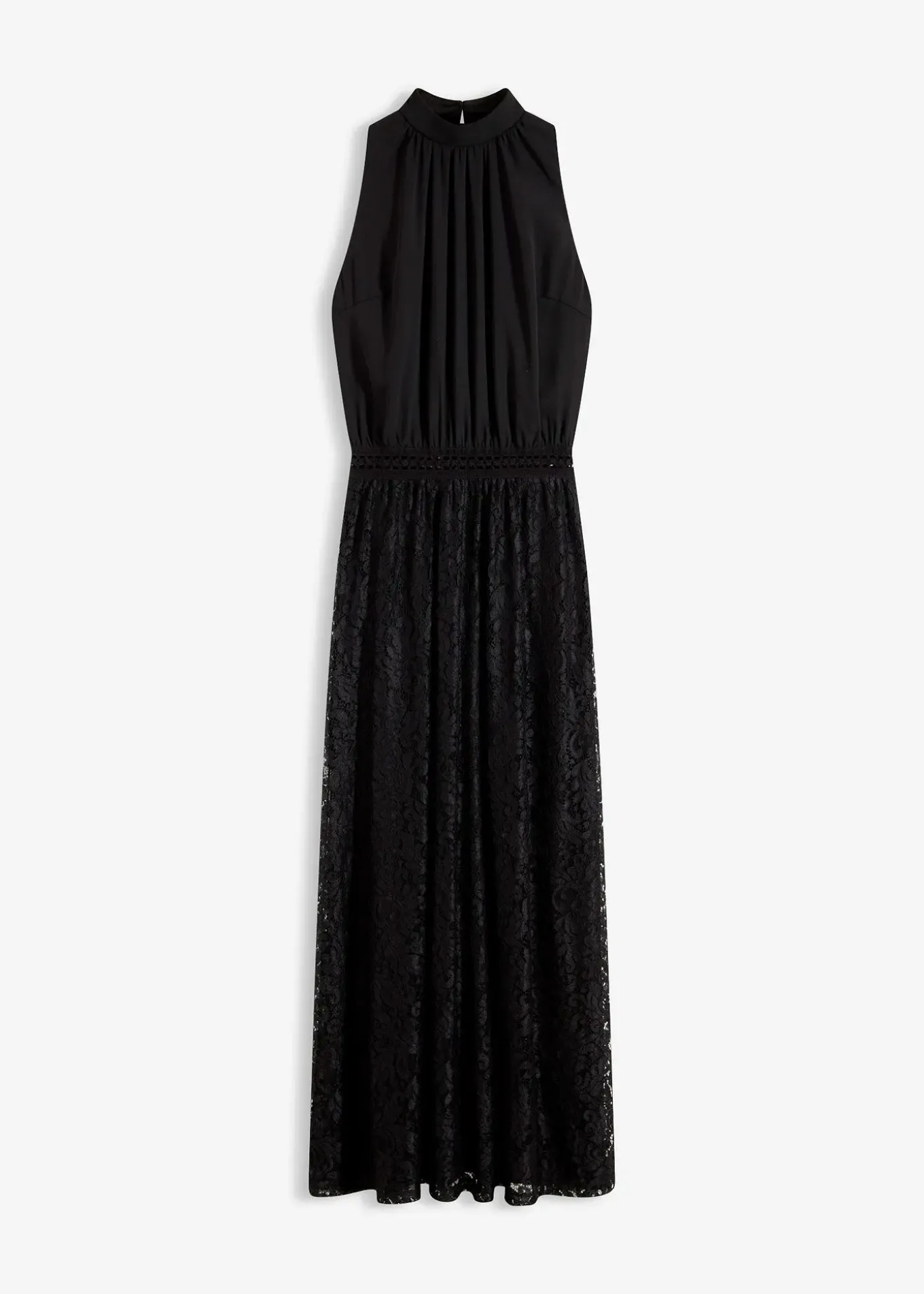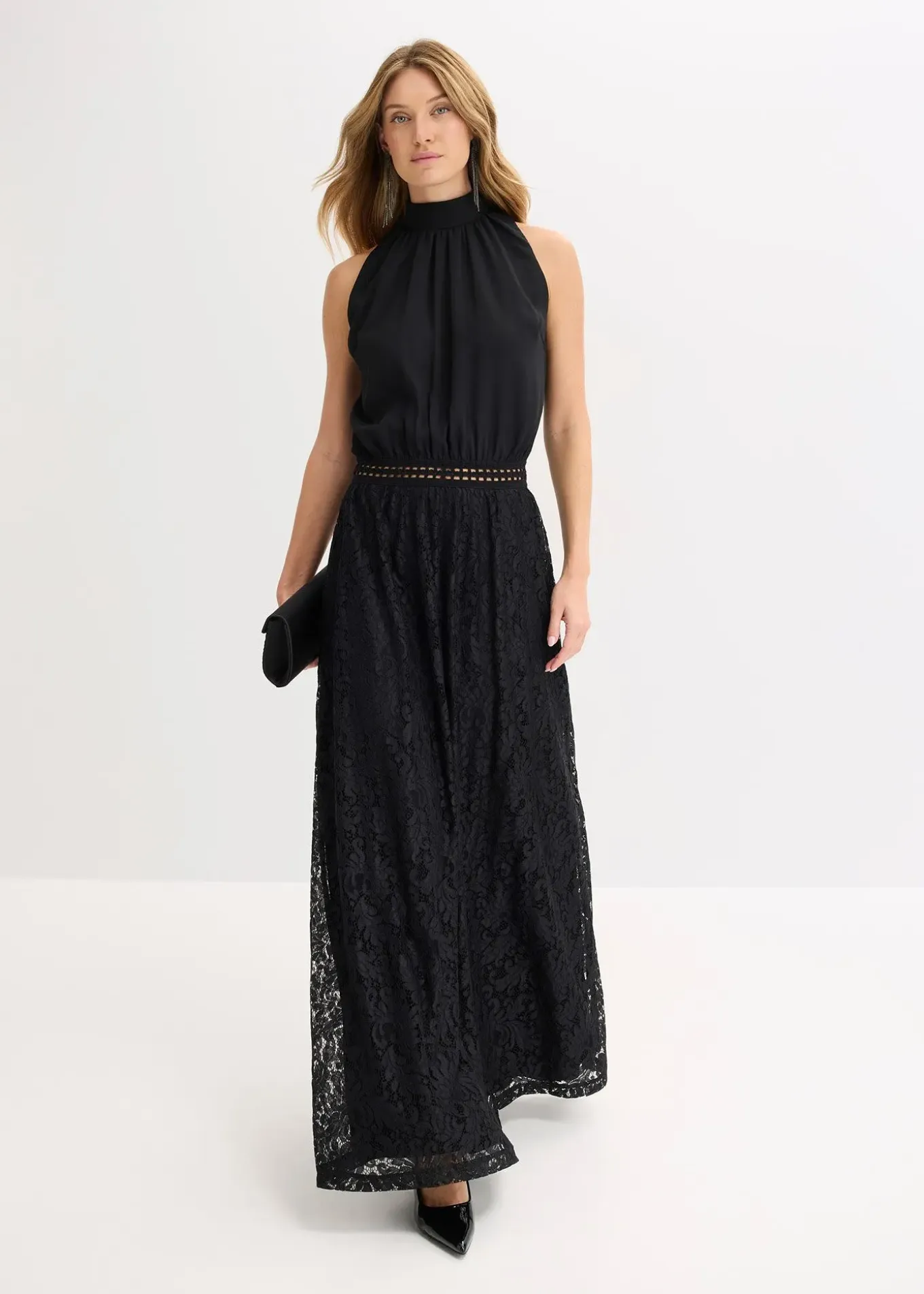Charmante robe de soirée moderne et féminine à col montant et jupe en dentelle romantique