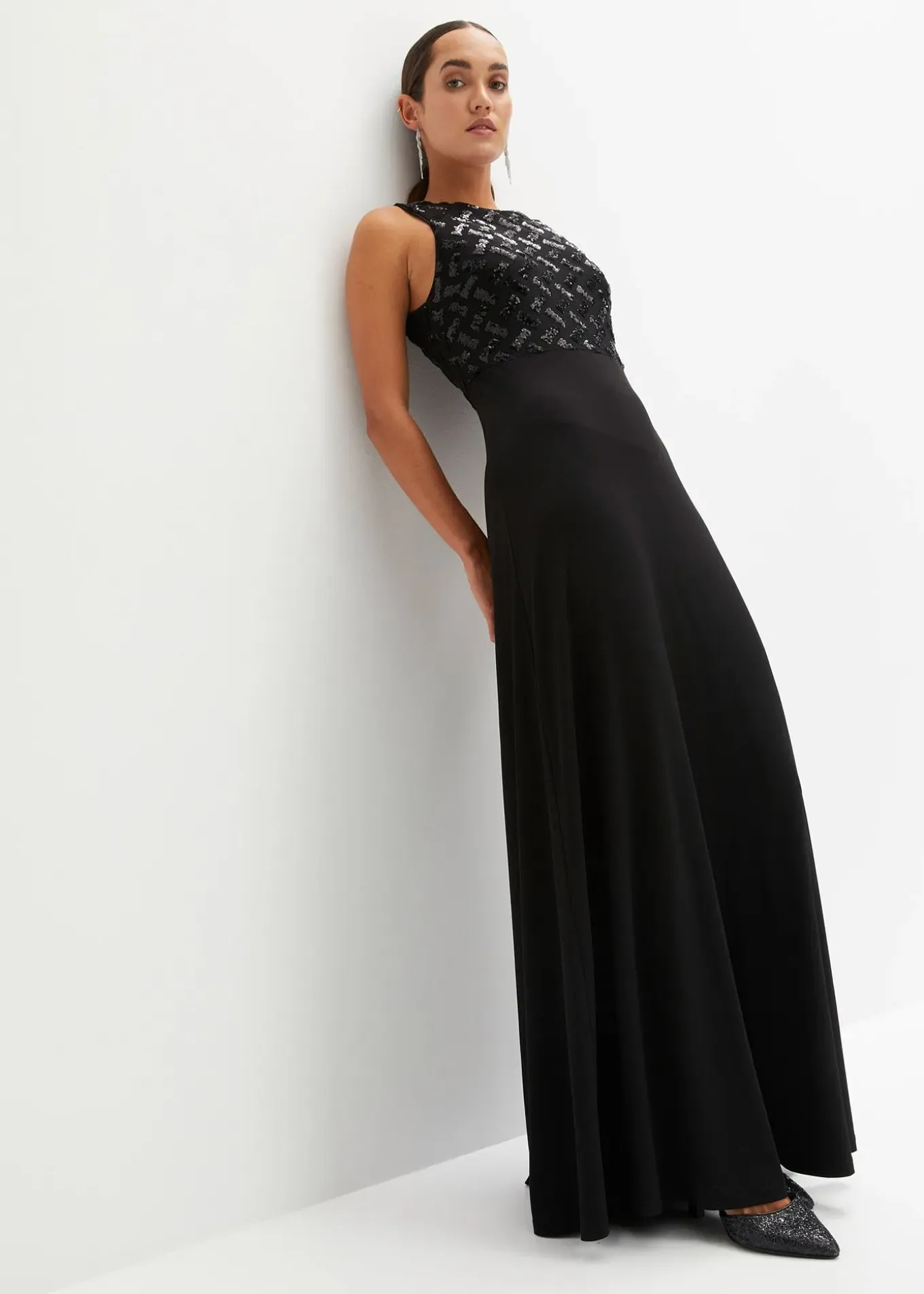 Élégante robe de soirée avec un haut brodé de sequins