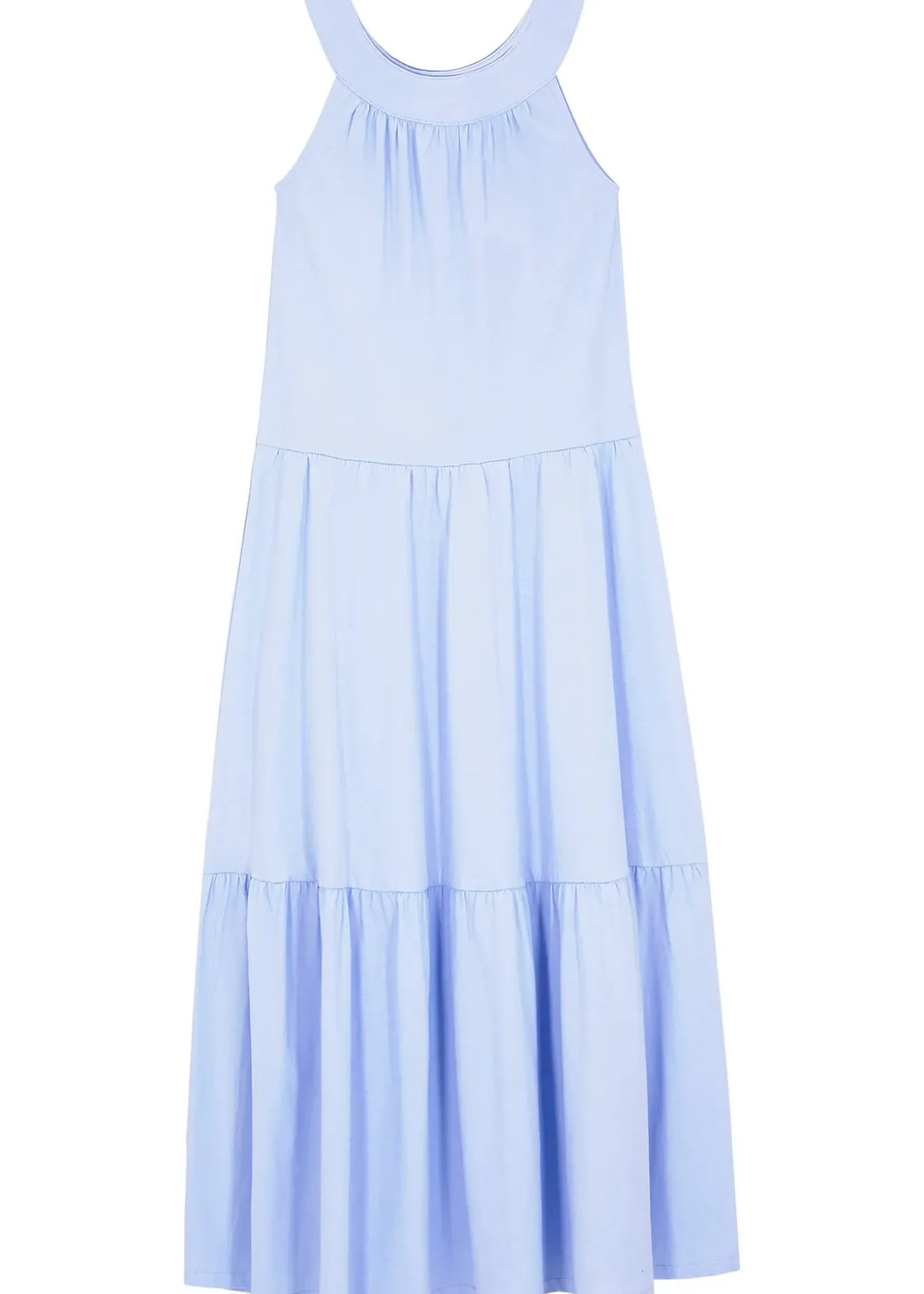 Robe longue et évasée en jersey pour fille avec fronces à l’encolure. Idéale pour l’été