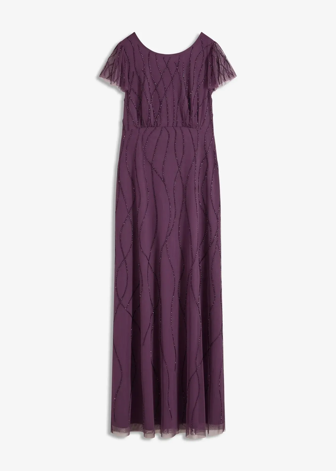 Moderne et féminine : longue robe de soirée en tulle délicat brodé de perles