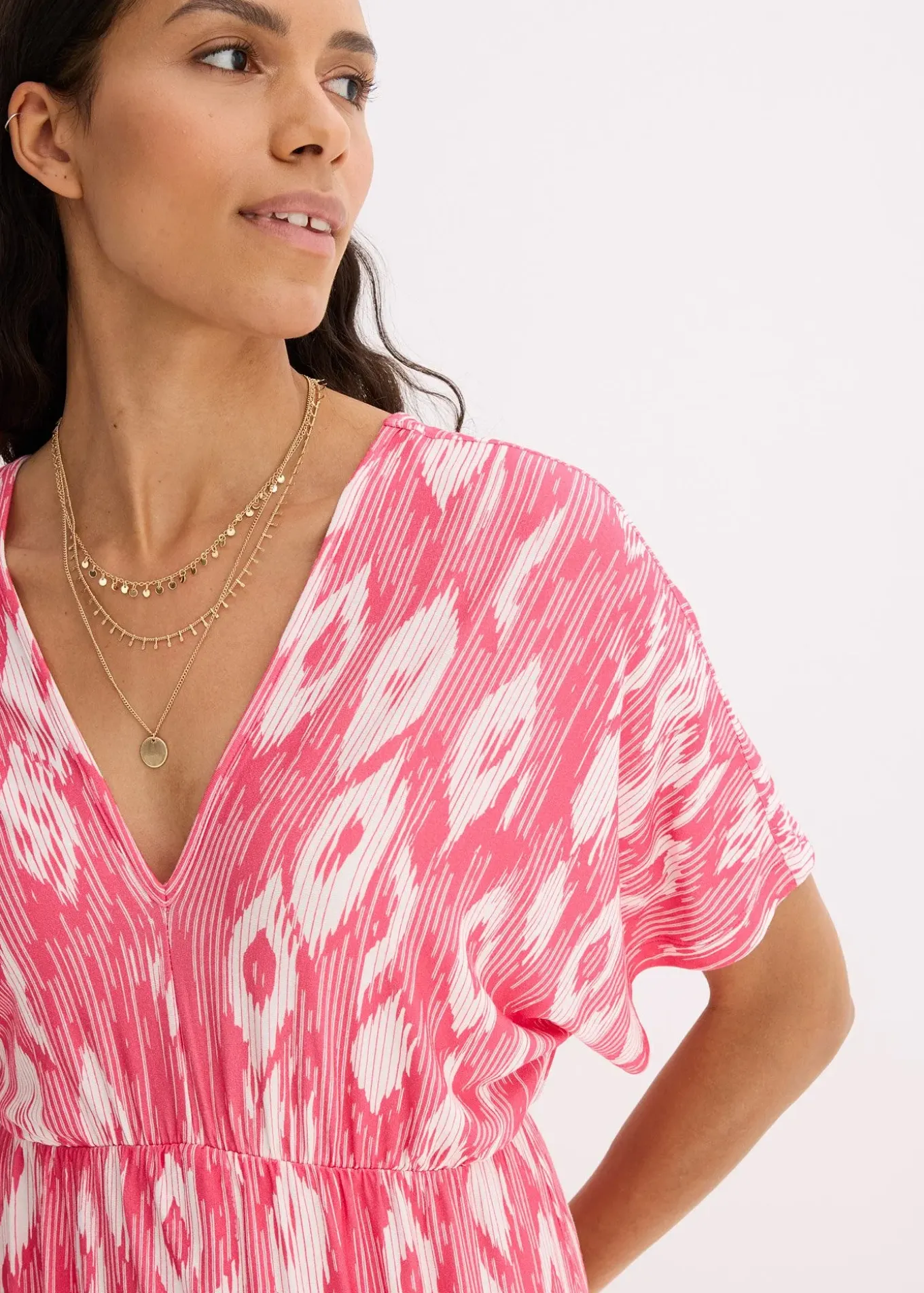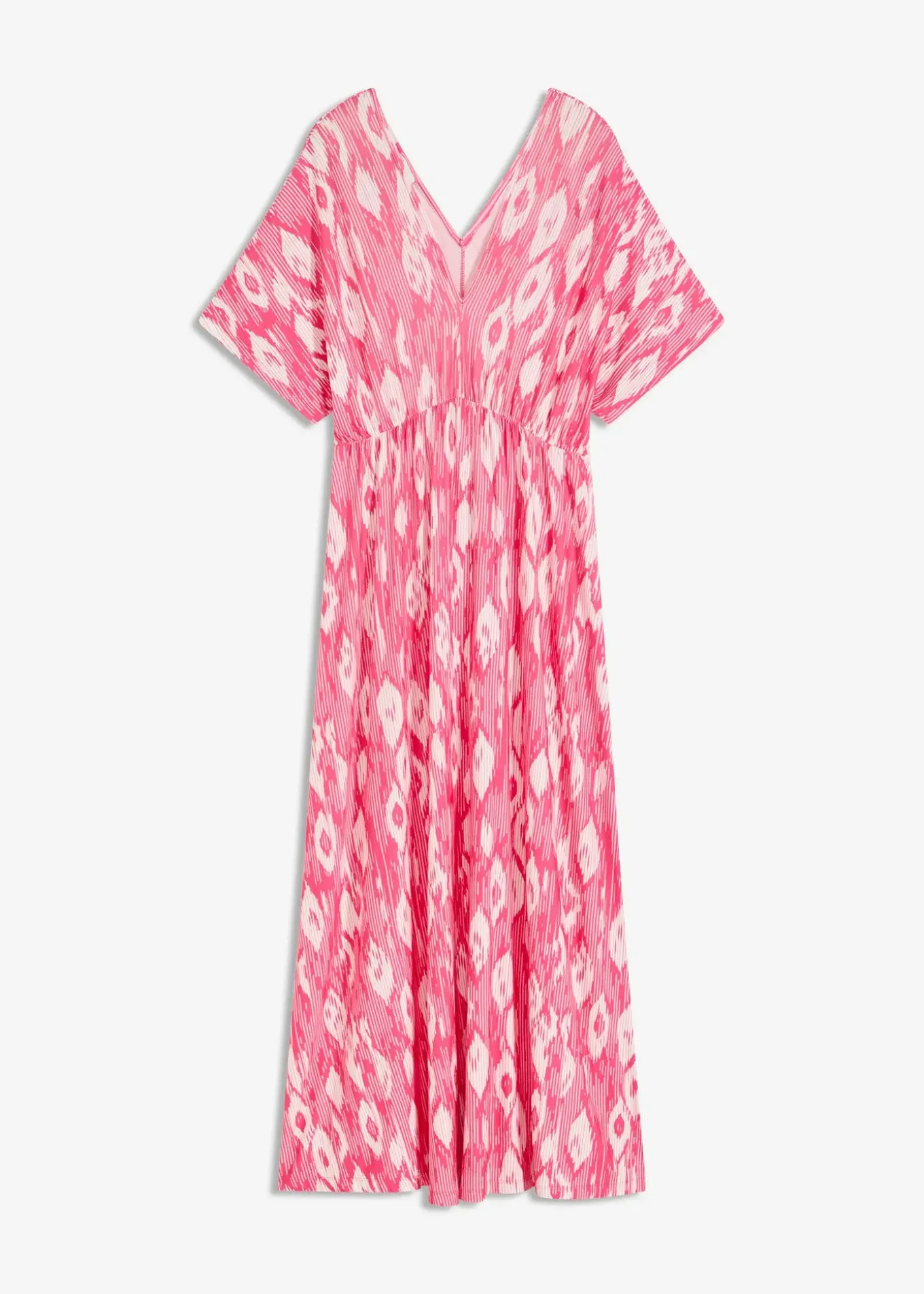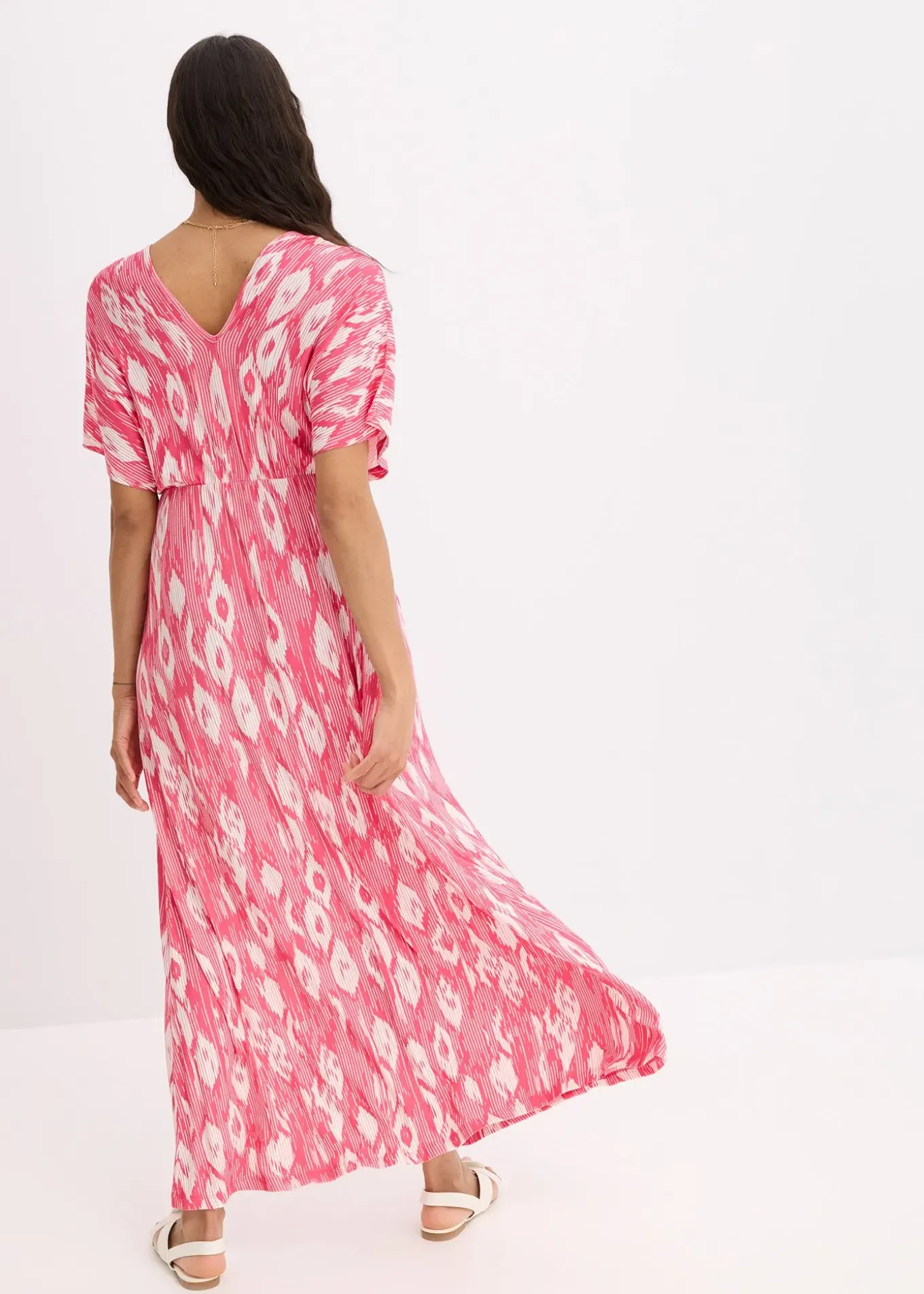 Robe longue en jersey à imprimé tendance avec manches amples et décolleté plongeant en V devant