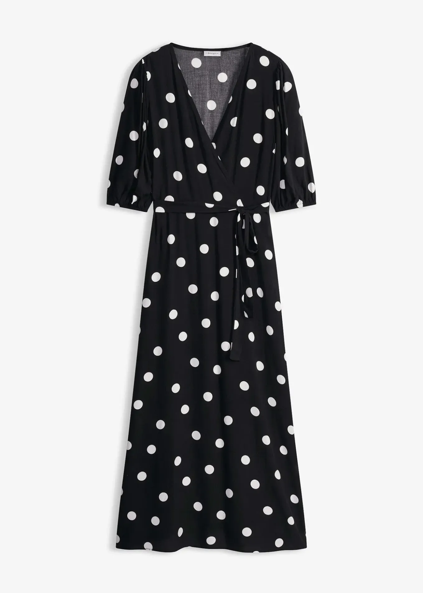 Robe longue et imprimée en viscose fluide avec col en V croisé devant