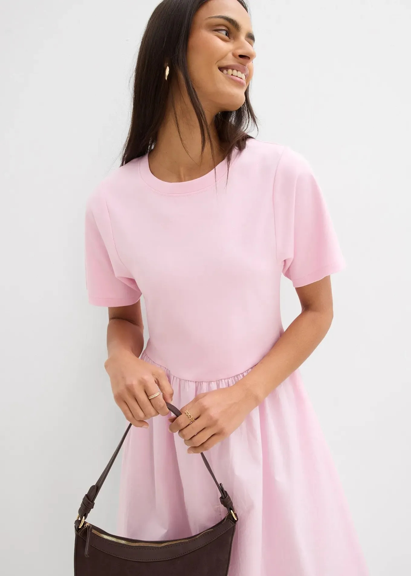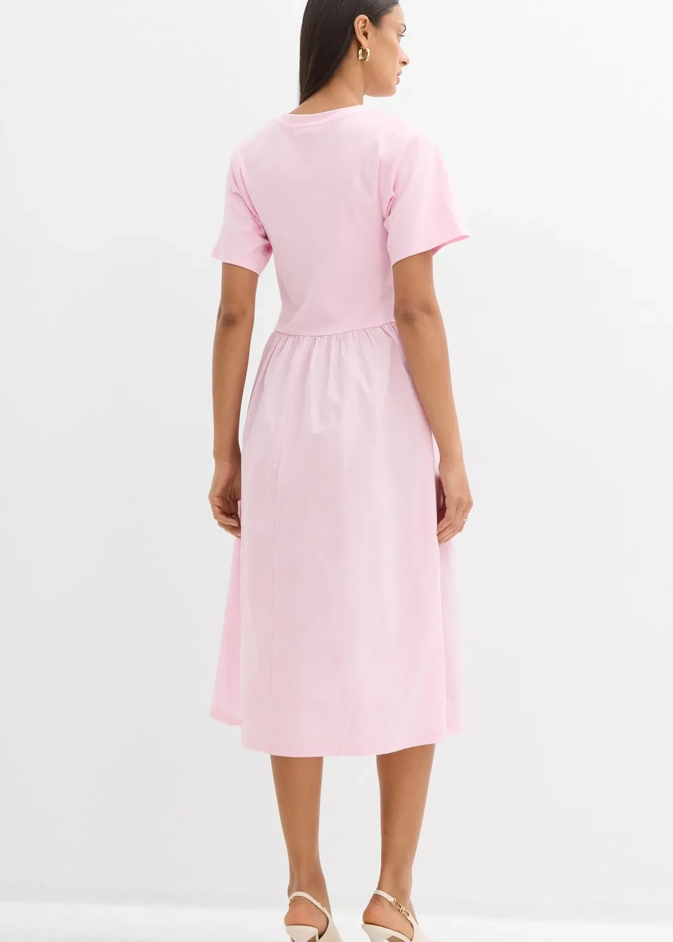Robe midi à manches courtes et empiècement contrastant