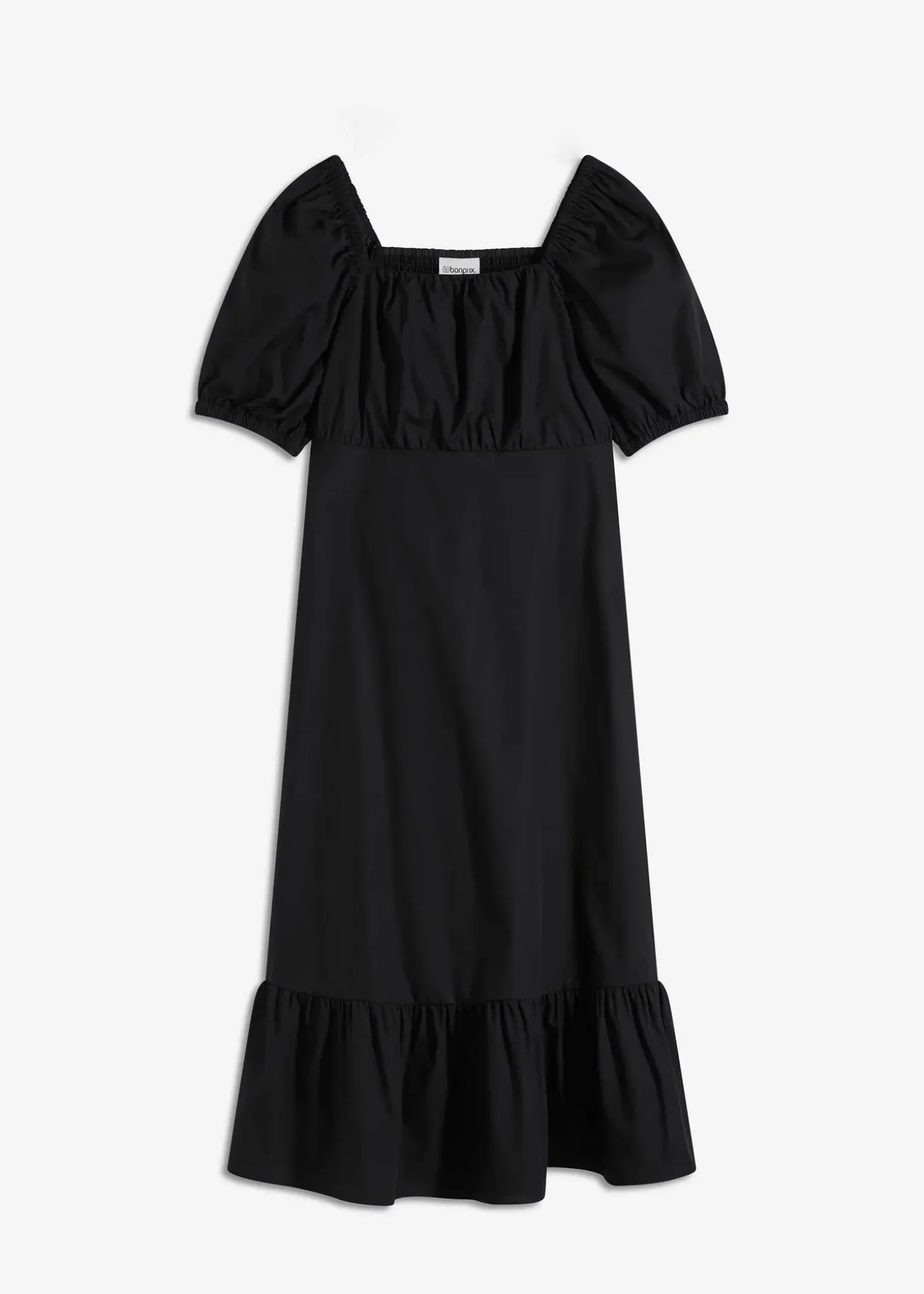 Robe midi féminine en coton avec manches bouffantes et haut froncé