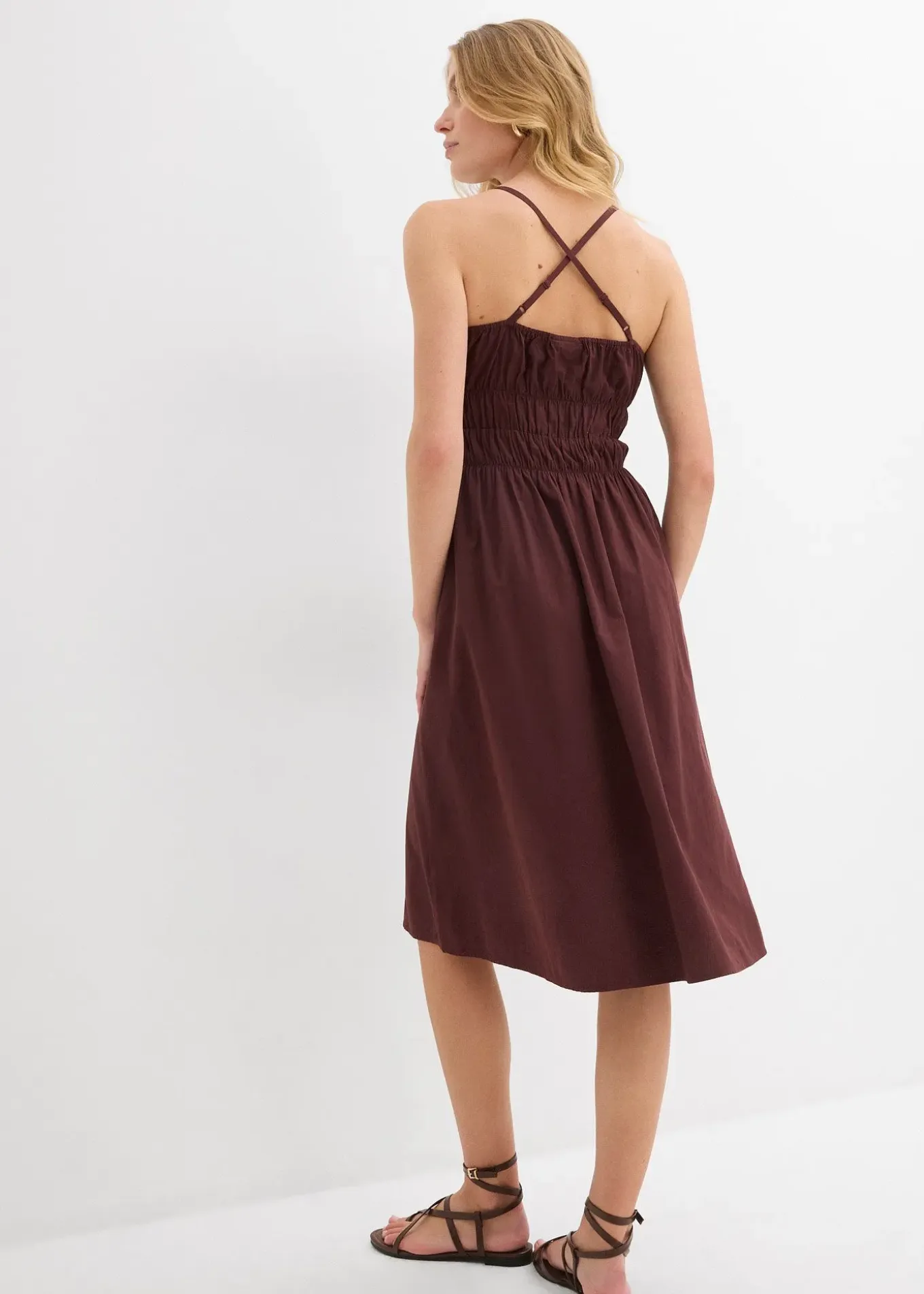 Robe à bretelles croisées au dos et détails smockés