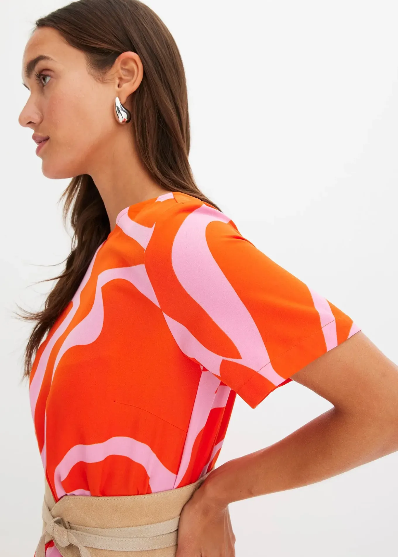 Robe midi mode à imprimé graphique et jupe évasée