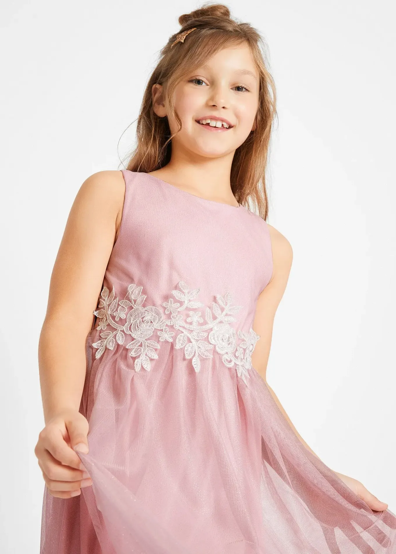 Robe sans manches avec une belle dentelle appliquée à la taille. Jupe légèrement brillante.