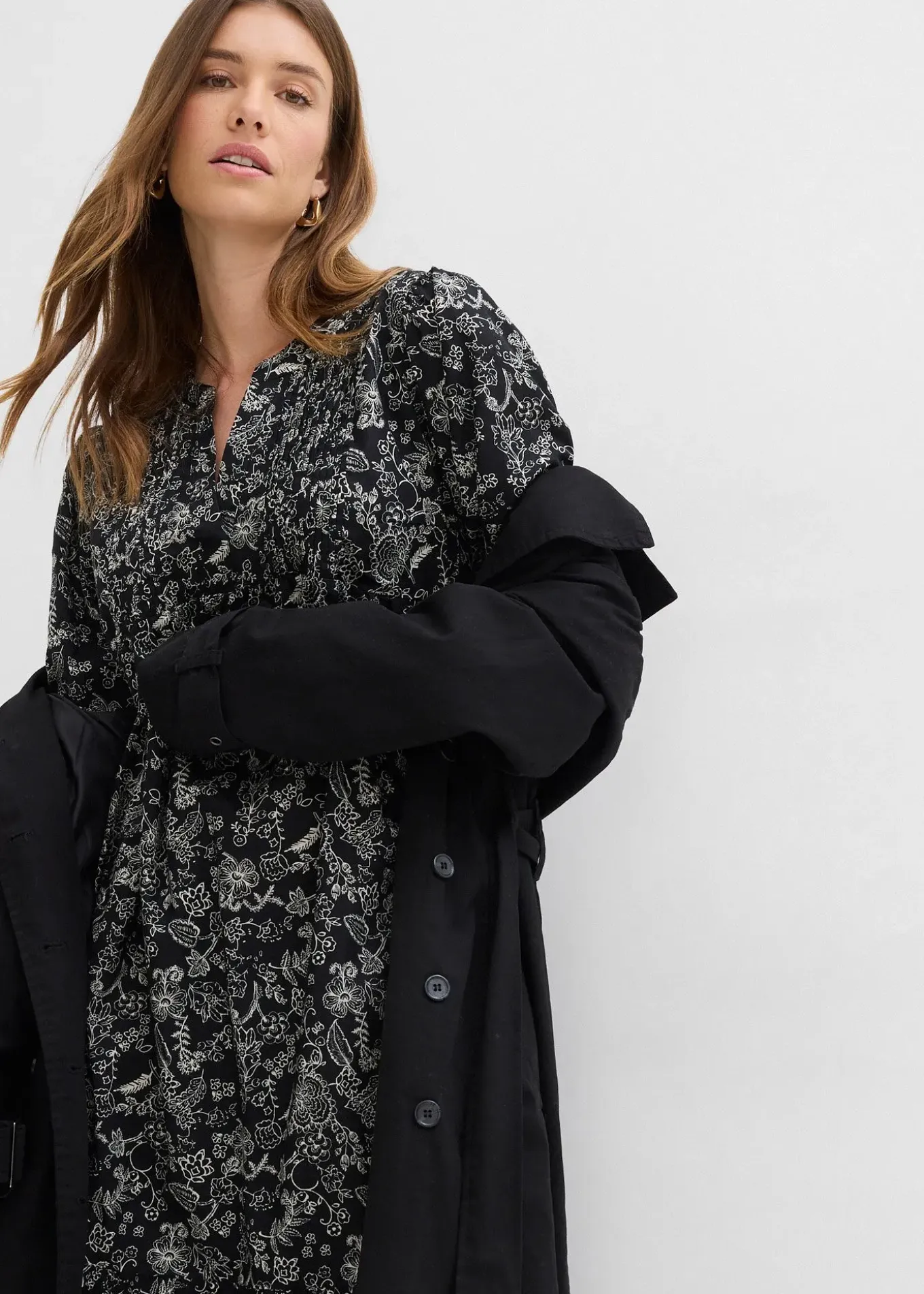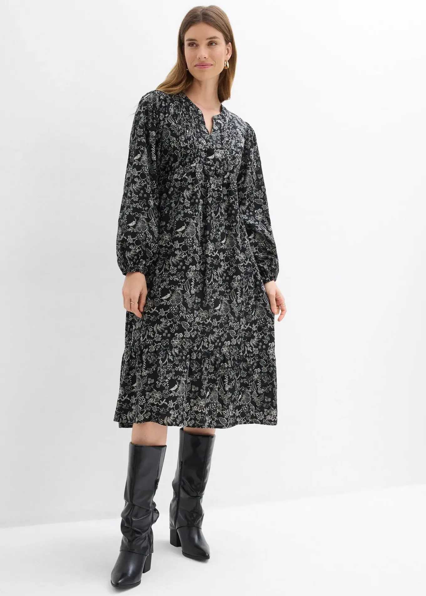 Robe midi en coton froissé à imprimé floral