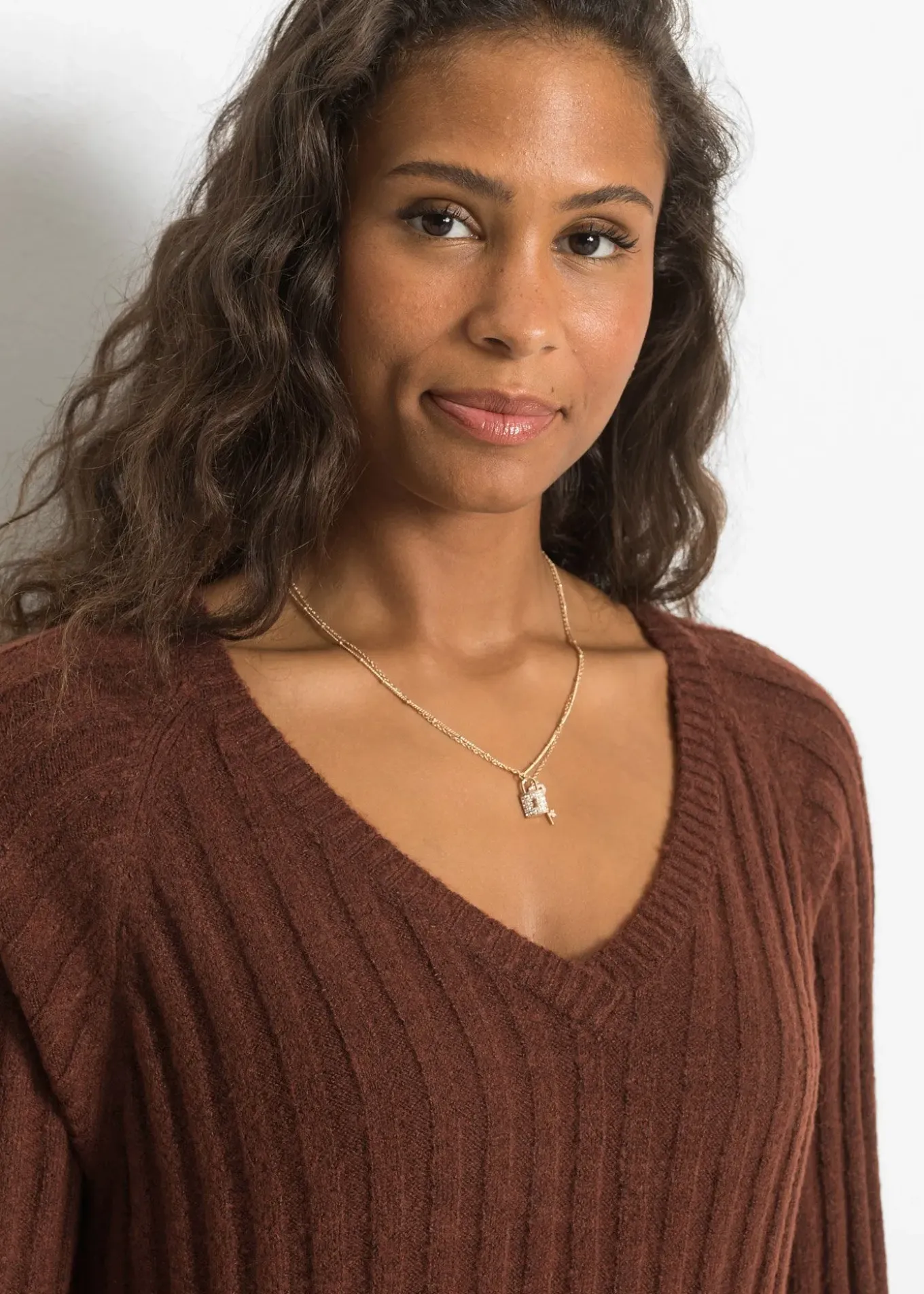 Robe midi en maille avec fente et col en V