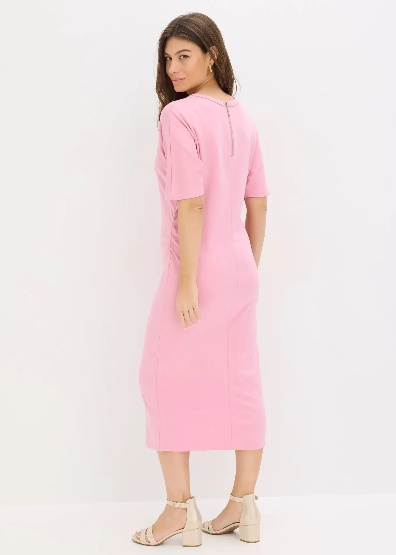 Robe longueur mollet avec détails plissés à la taille