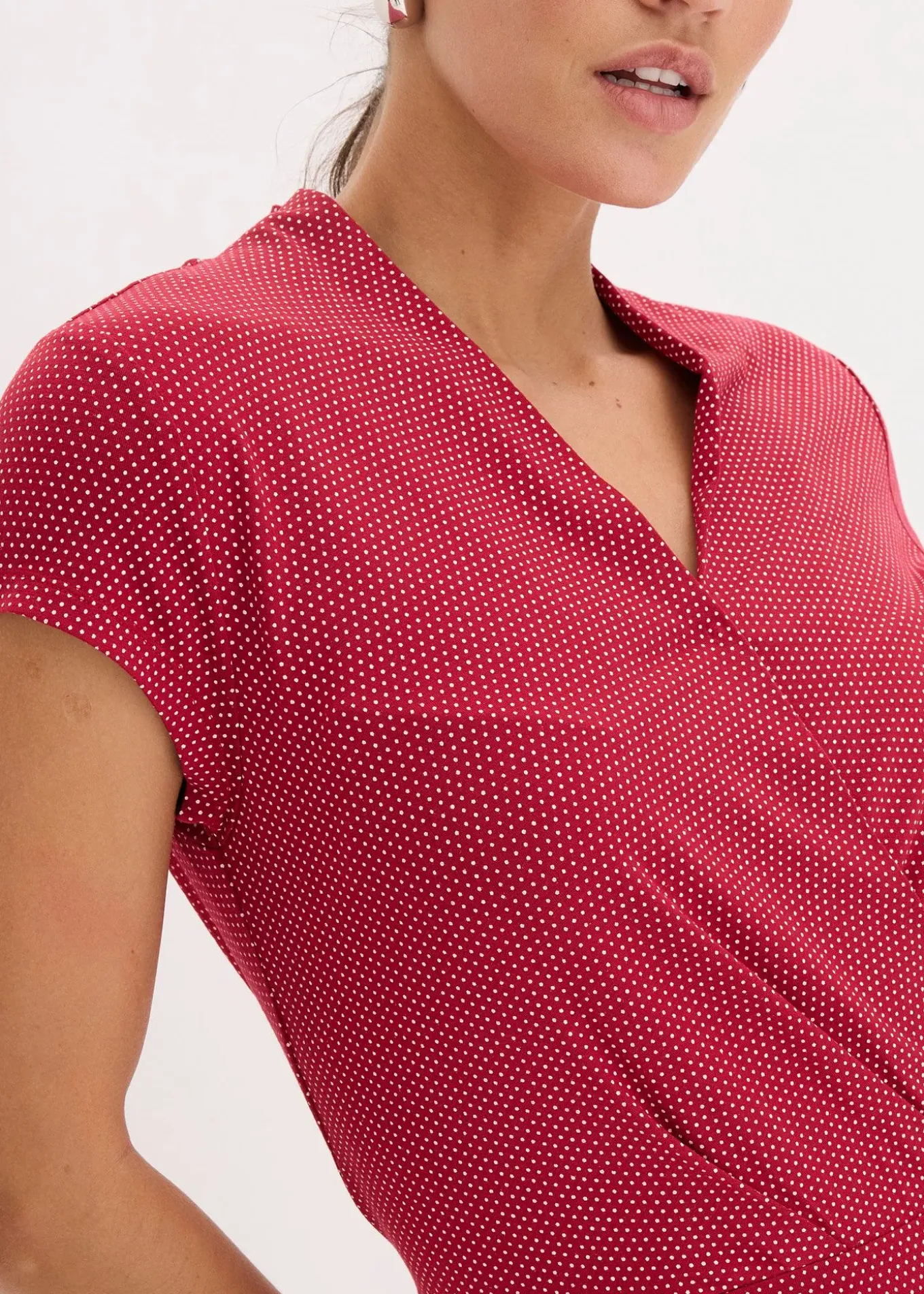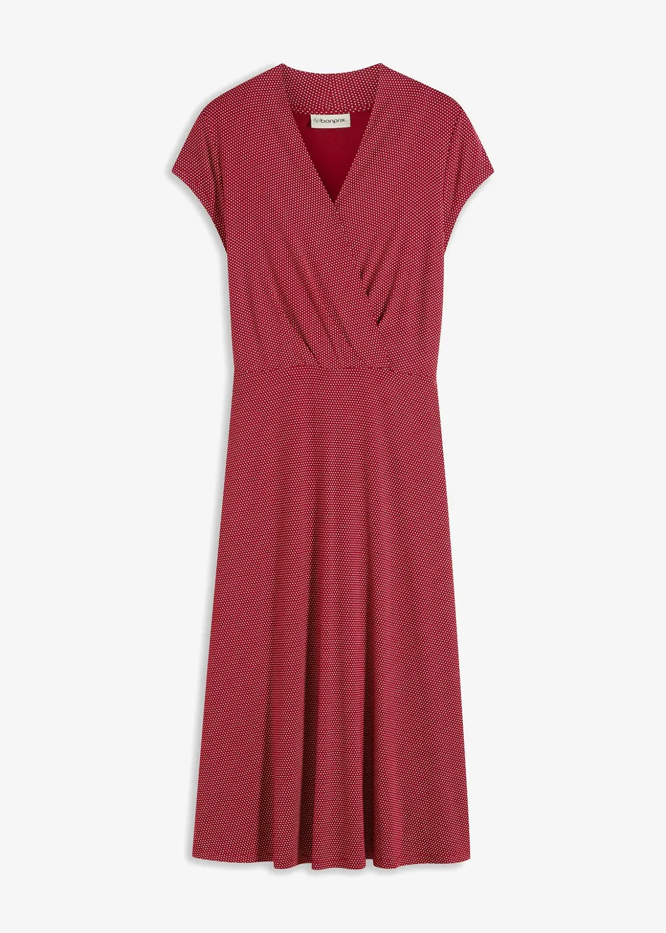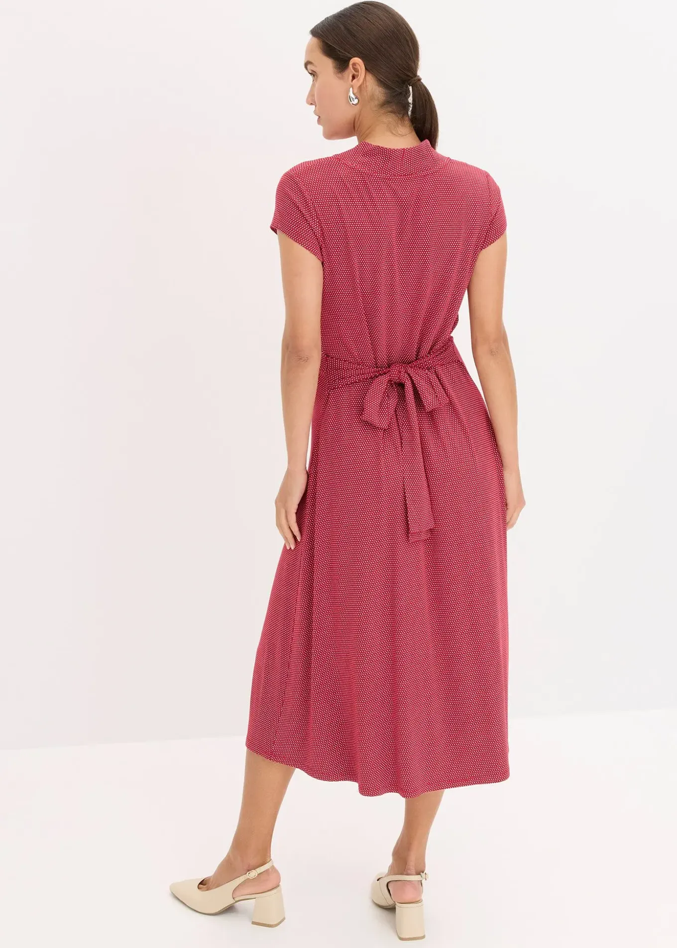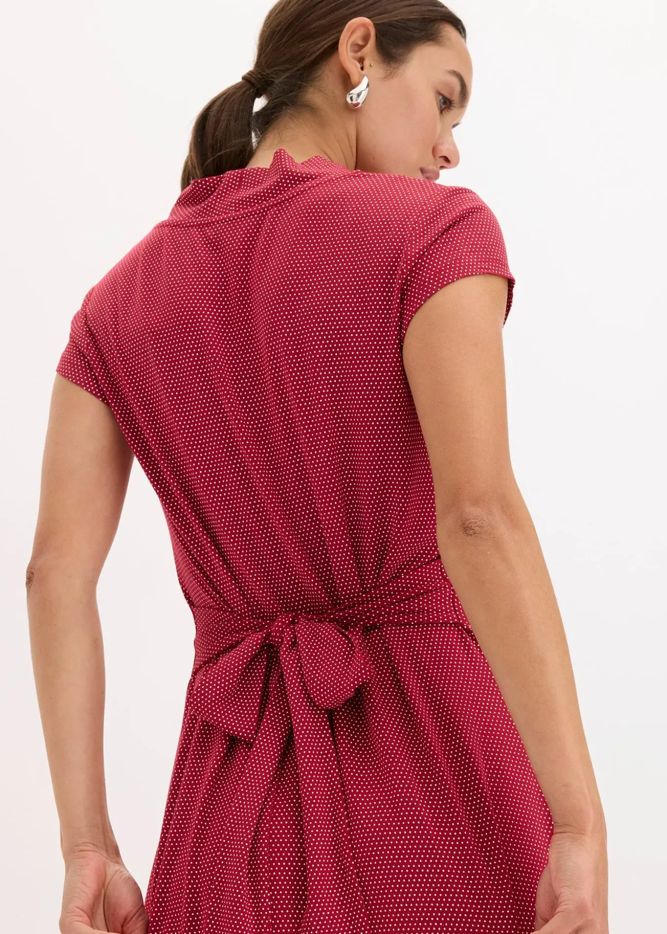 Jolie robe en jersey effet portefeuille, avec lien à nouer à la taille.