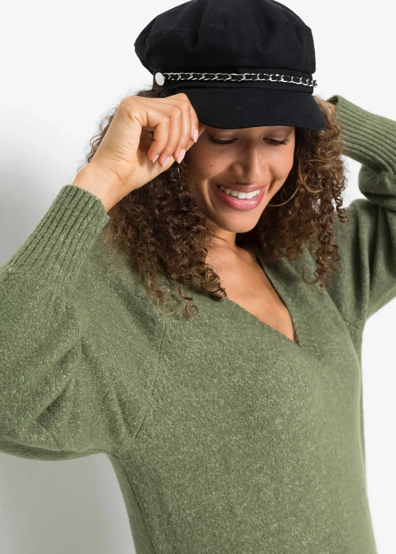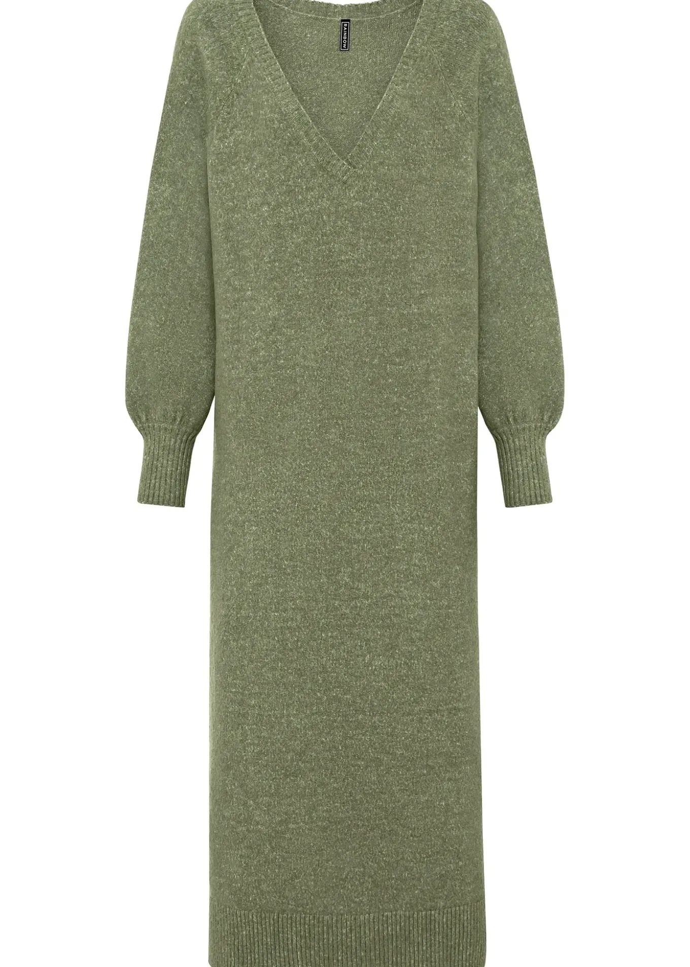 Robe longue en maille, coupe oversize décontractée, manches légèrement ballon