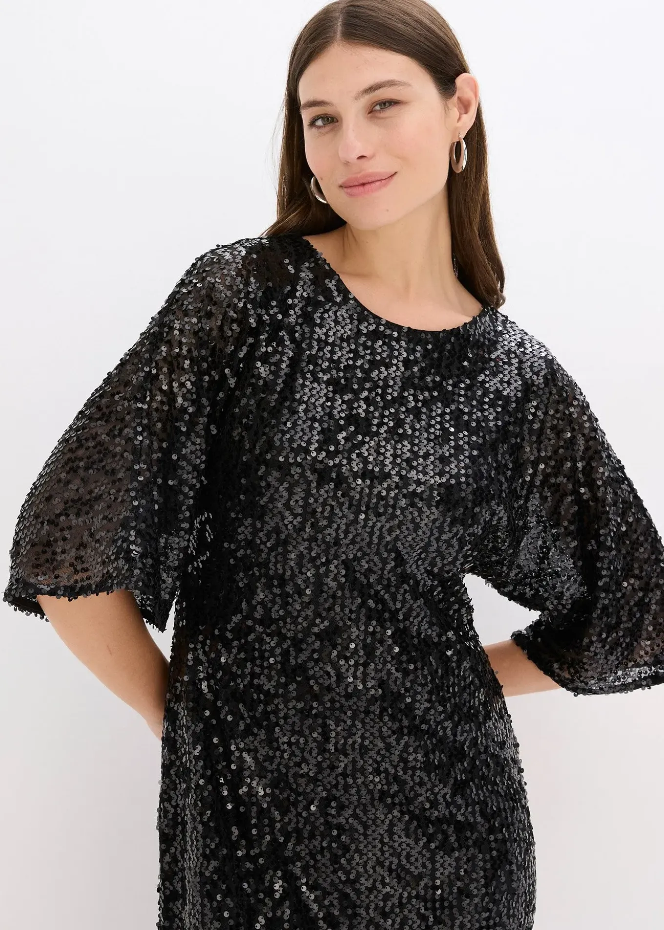 Robe courte oversize, moderne et féminine, rehaussée de sequins et de manches kimono