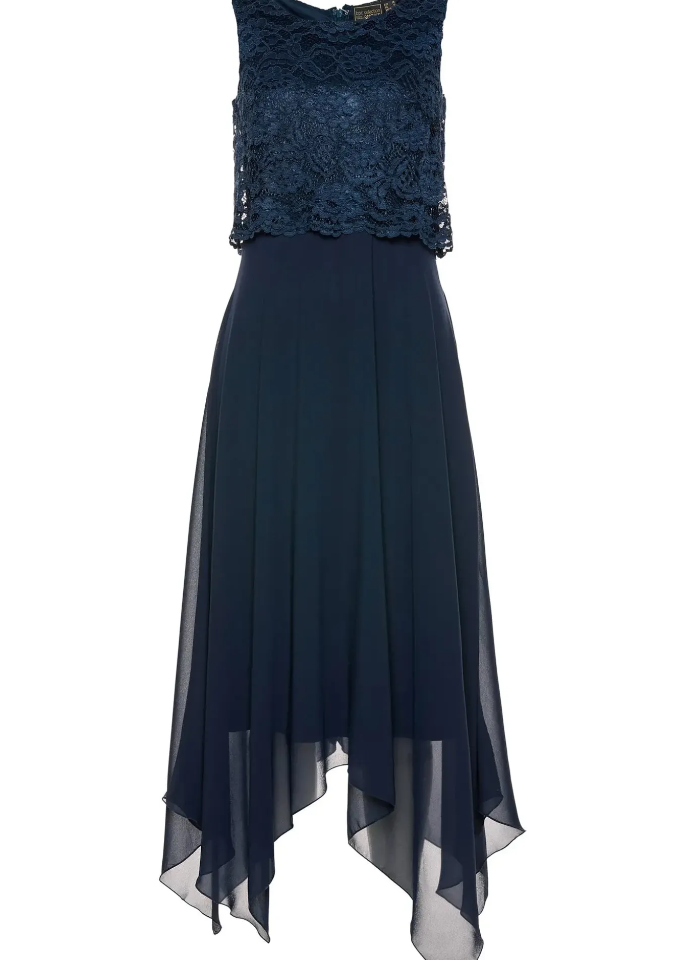 Robe de soirée élégante avec haut en dentelle et jupe à pointes