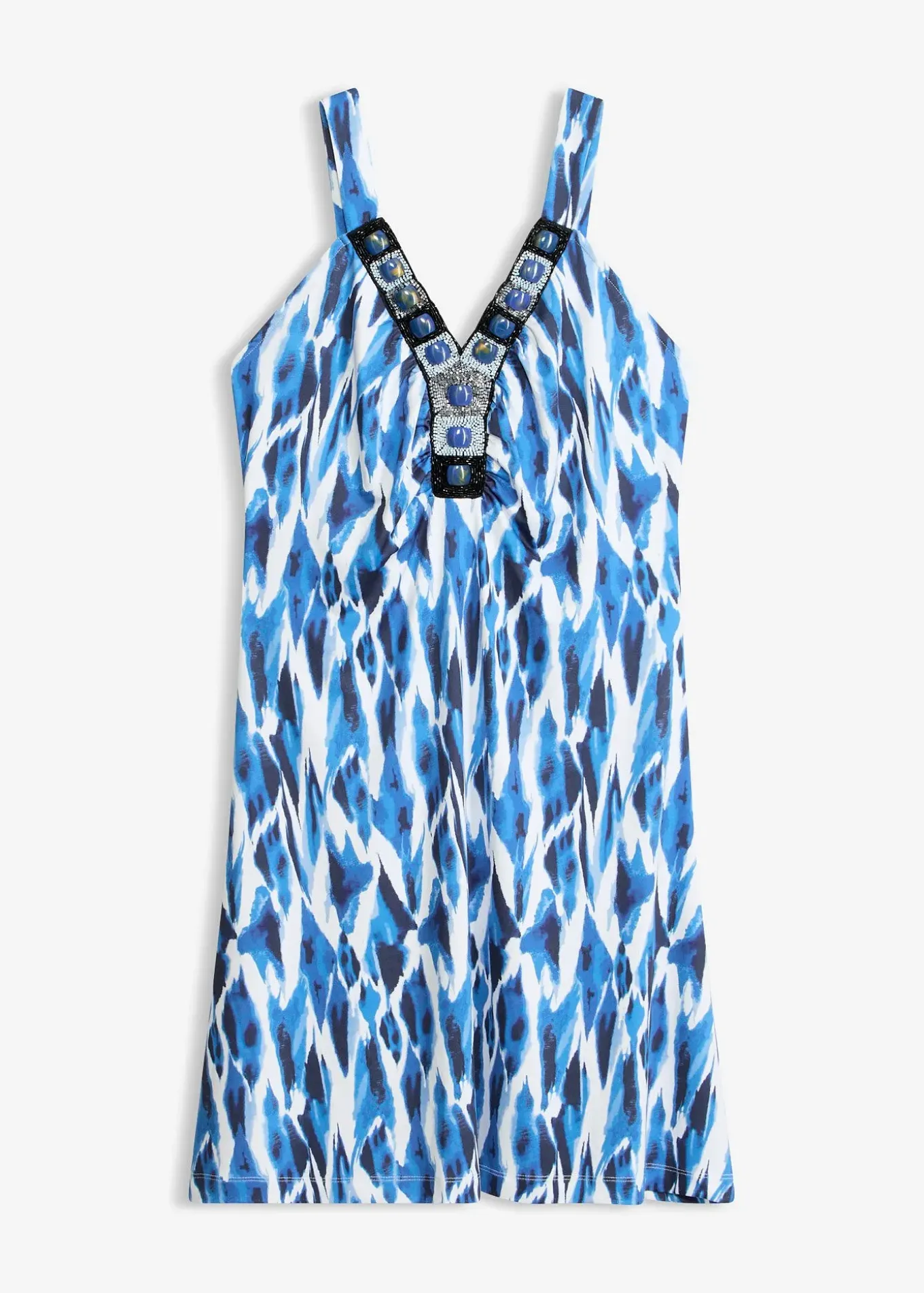 Robe estivale moderne avec application bijou élégante. Long. env. 94 cm.