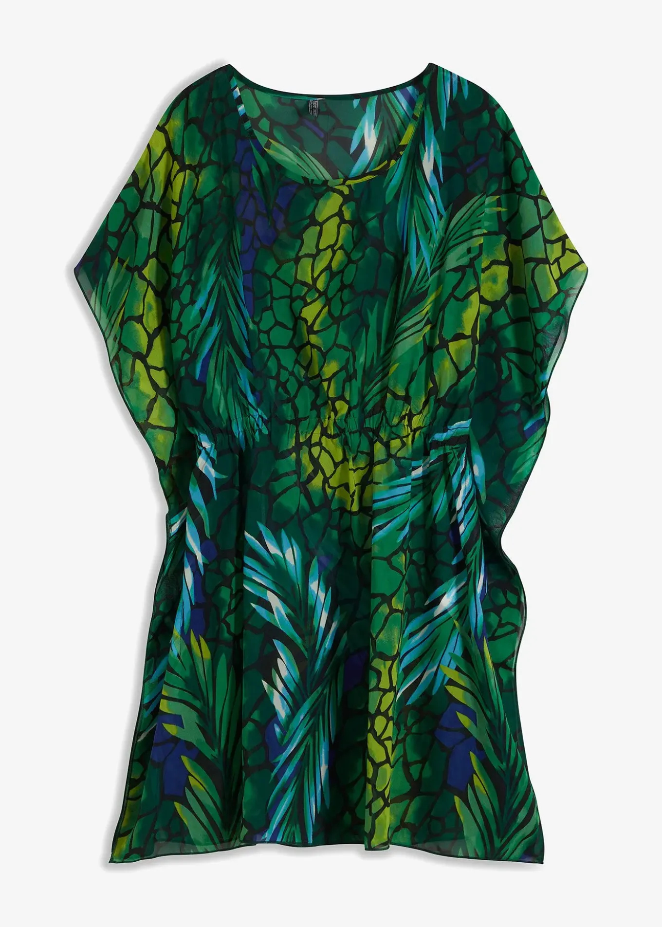 Jolie robe de plage légèrement transparente de bpc selection qui complète à merveille un bikini ou maillot 1 pièce.Avec élastique coulissant à la taille pour le confort et sublimer la silhouette. Coupe fluide, manches amples et base fendue sur les côtés.