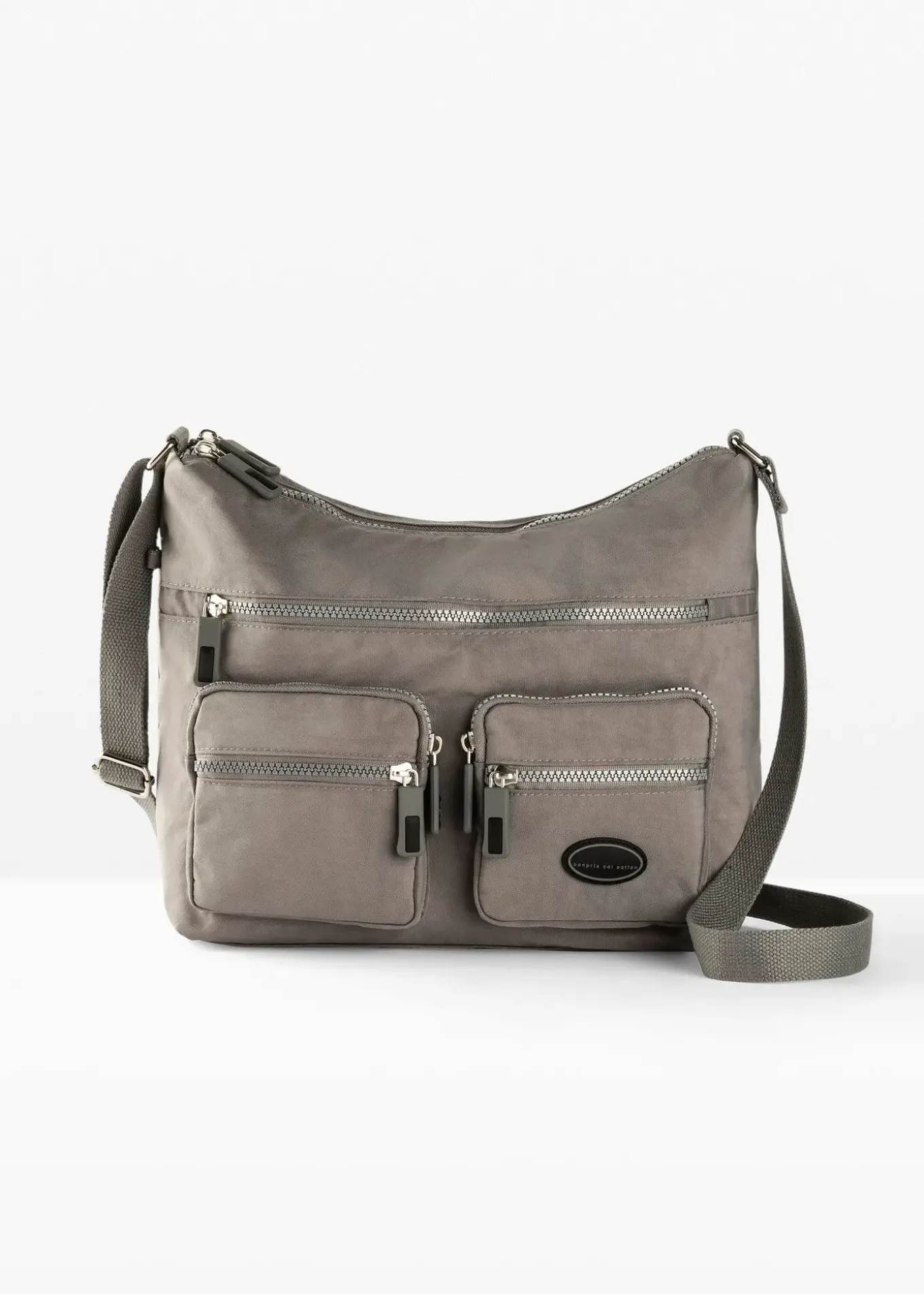 Sac à bandoulière pratique avec deux compartiments principaux et cinq poches zippées supplémentaires sur le devant. Largeur supérieure env. 30 cm.