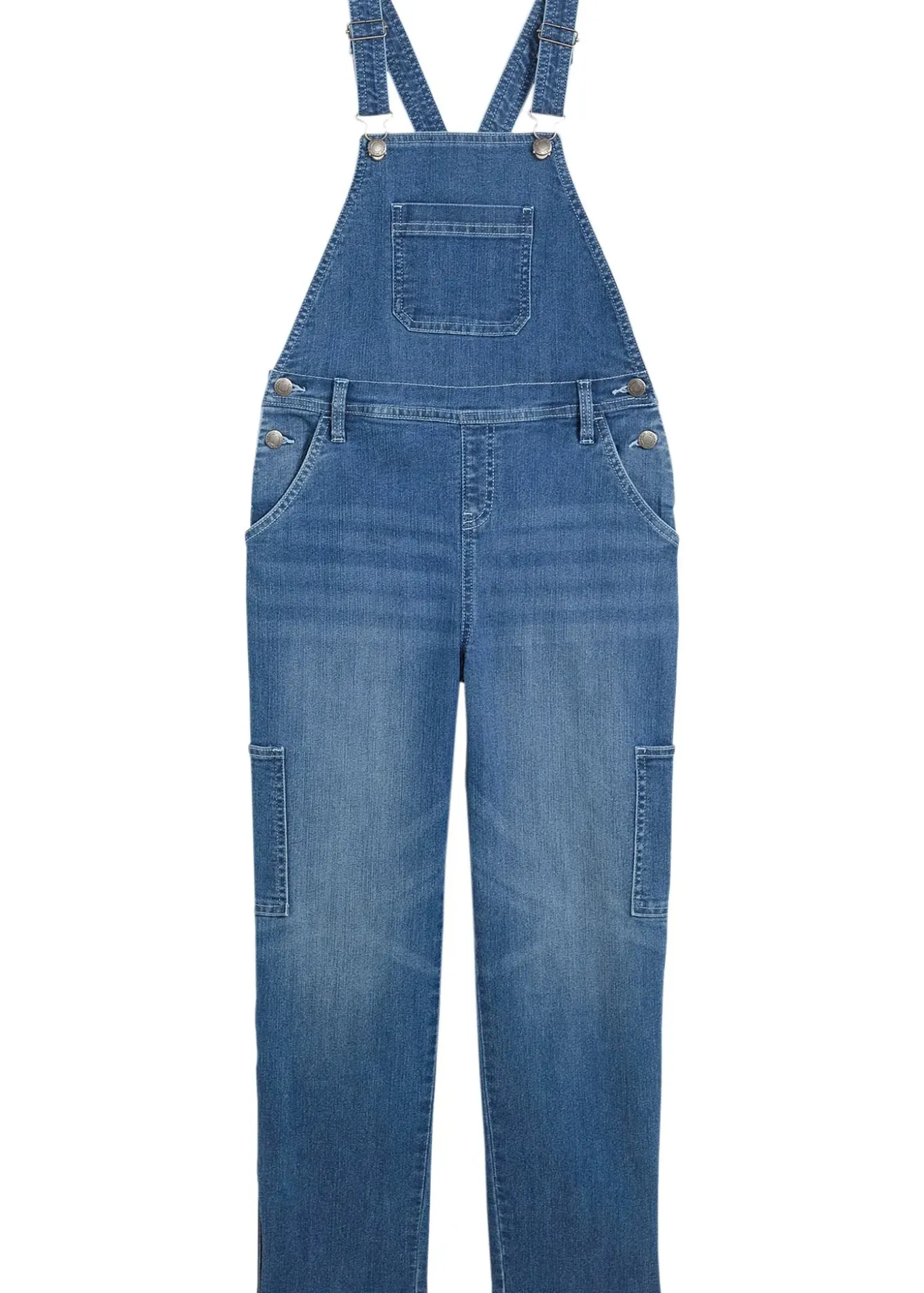 Salopette en jean cool pour fille avec plein de poches et des effets used