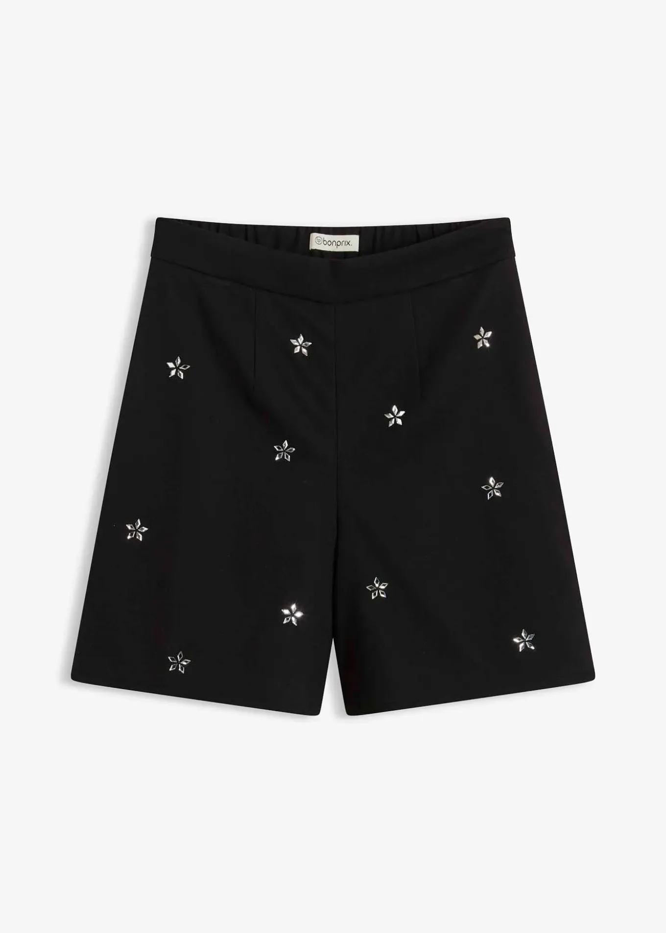Short en matière extensible, avec strass et taille élastiquée derrière