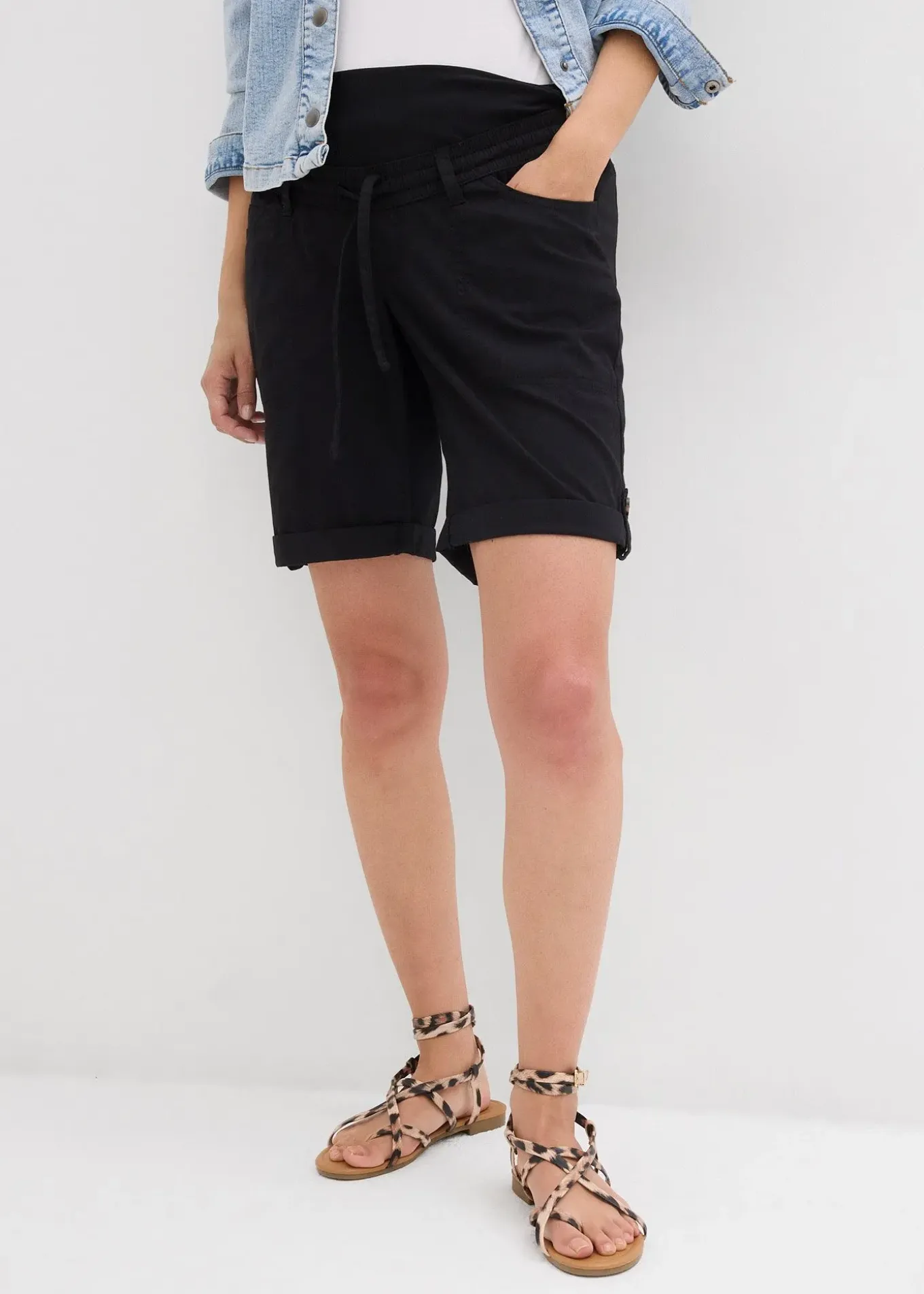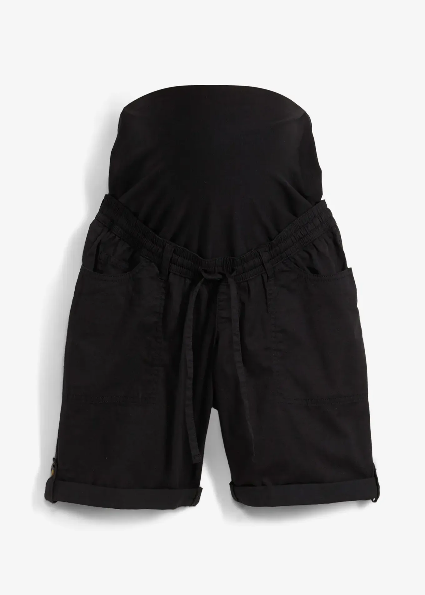 Short pour la grossesse en coton extensible. Taille élastiquée avec cordon de serrage réglable et passants de ceinture pour une coupe confortable qui s’adapte au ventre qui s’arrondit. Fermeture zippée et bouton pour retrousser les jambes et le porter en bermuda décontracté ou en short les jours particulièrement chauds. Poches plaquées pratiques à l’avant et poches à rabat à l’arrière.