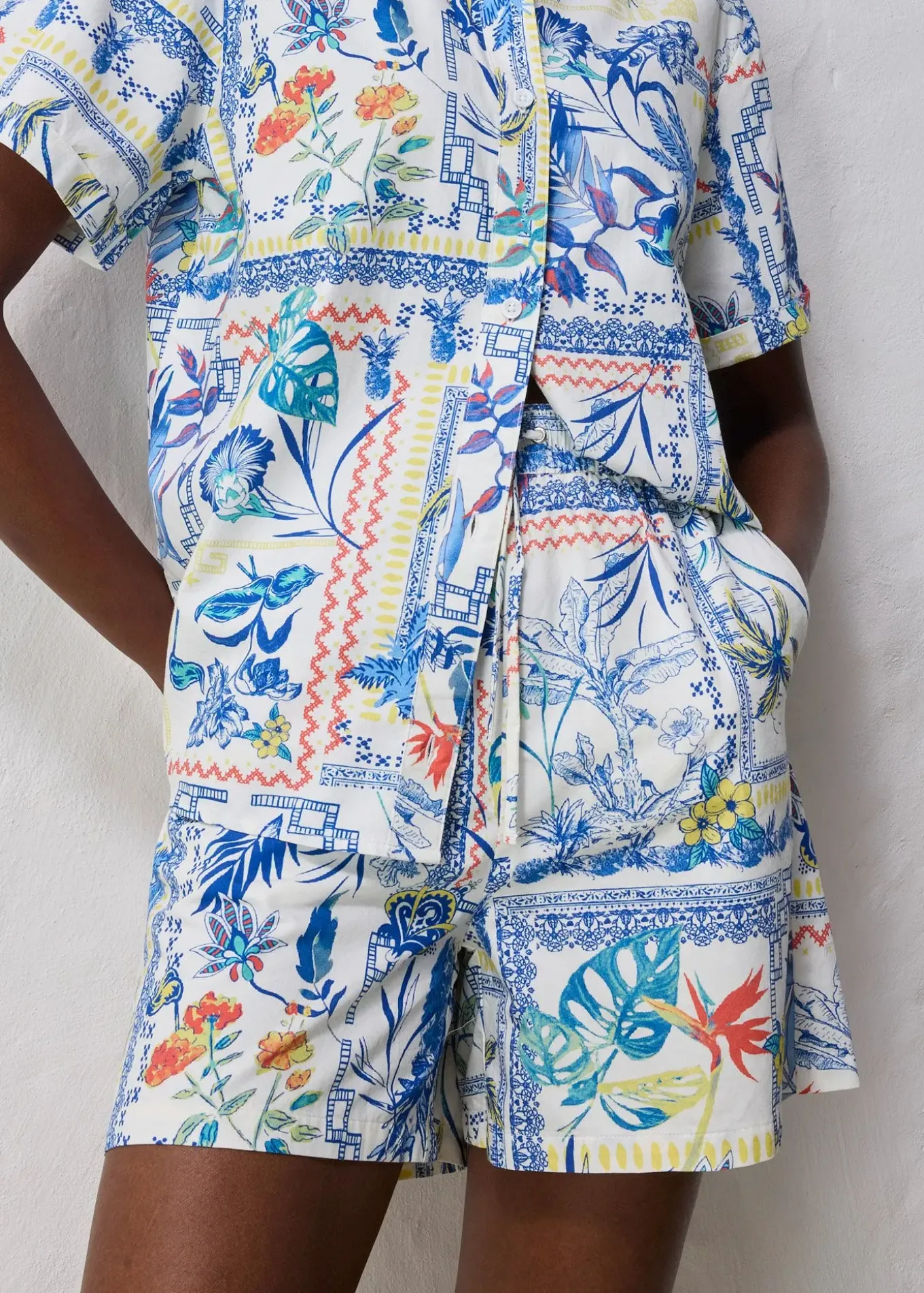 Short premium en coton et soie avec un bel imprimé accrocheur