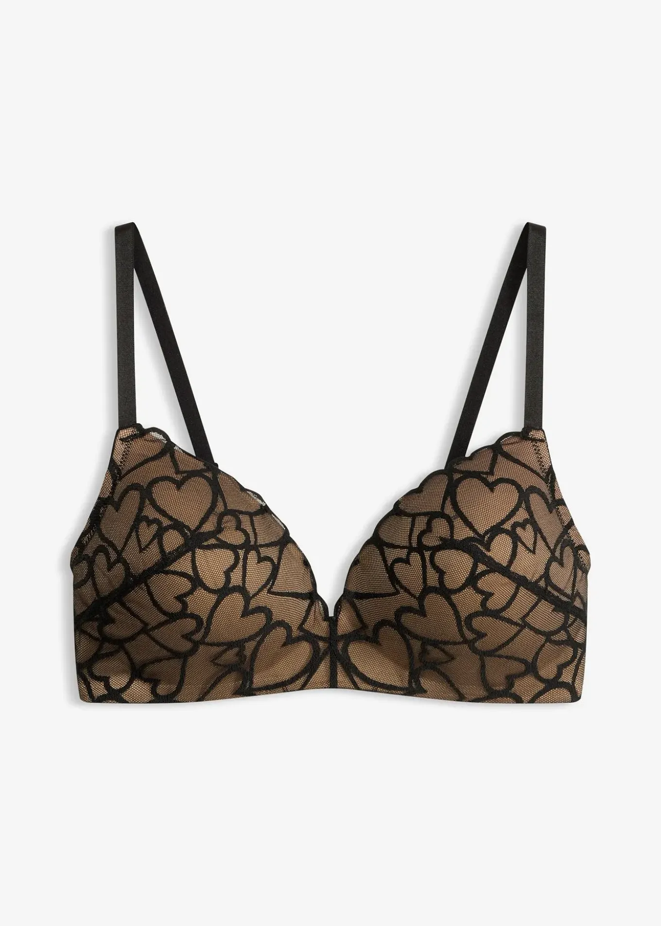 Soutien-gorge à coques sans armatures, dentelle cœurs