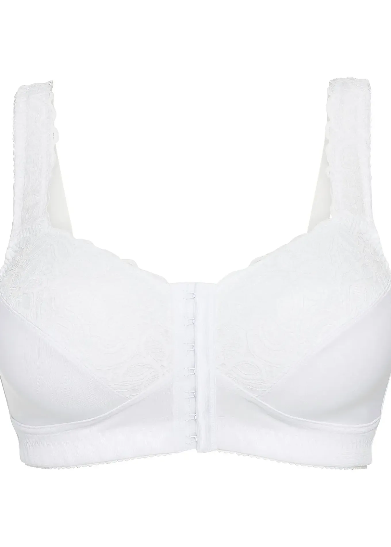 Soutien-gorge grand maintien avec fermeture devant, dentelle sur le haut du bonnet et sur les larges bretelles rembourrées.