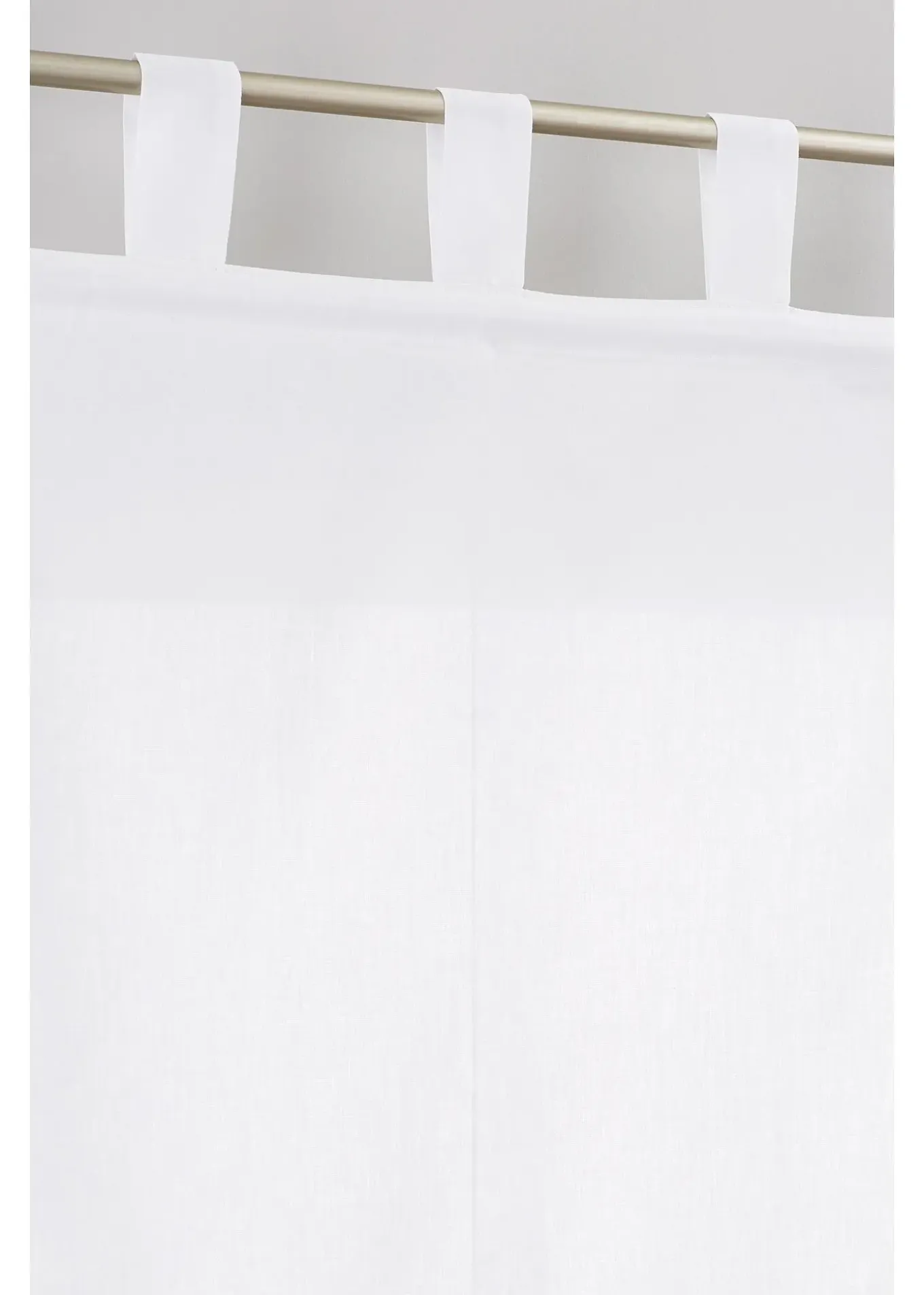 Store bateau style campagne en matière mélangée semi-transparente, bordure raffinée bordée d’un galon au crochet. Avec houppes amovibles. Accrochage par pattes, accessoires inclus, dimensions = dimensions du tissu, hauteur pattes comprise, lavable.