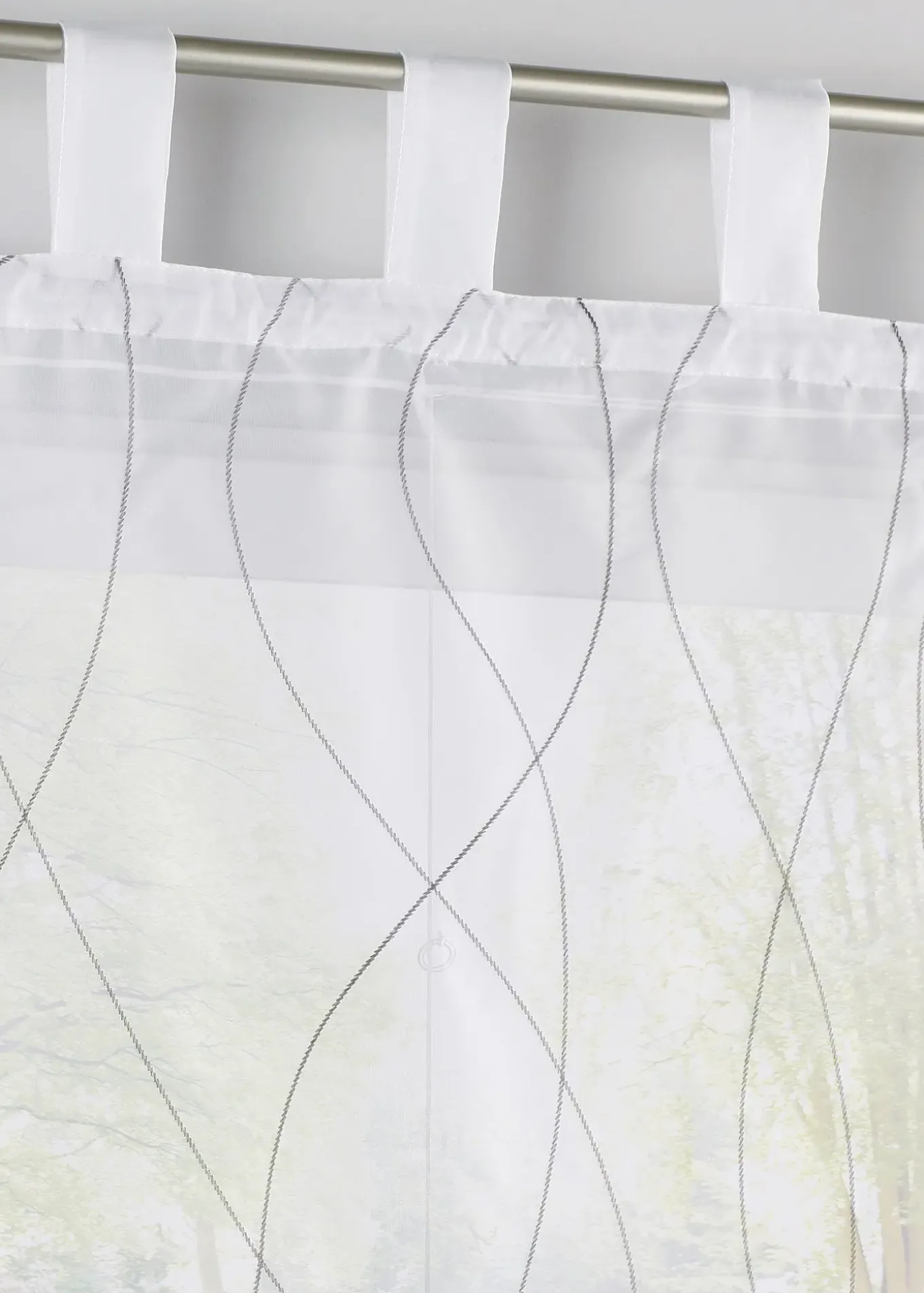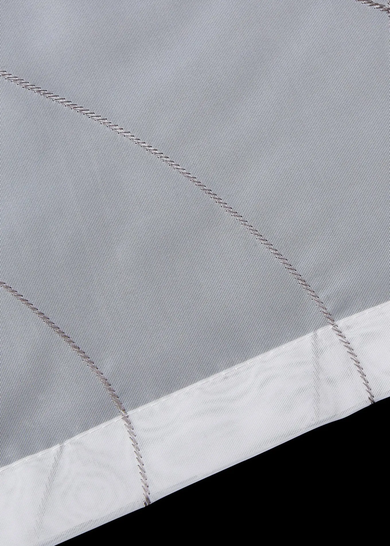 Store bateau transparent en voile blanc avec entrelacs brodés gris. Design intemporel pour s’adapter à de nombreux styles d’intérieur.