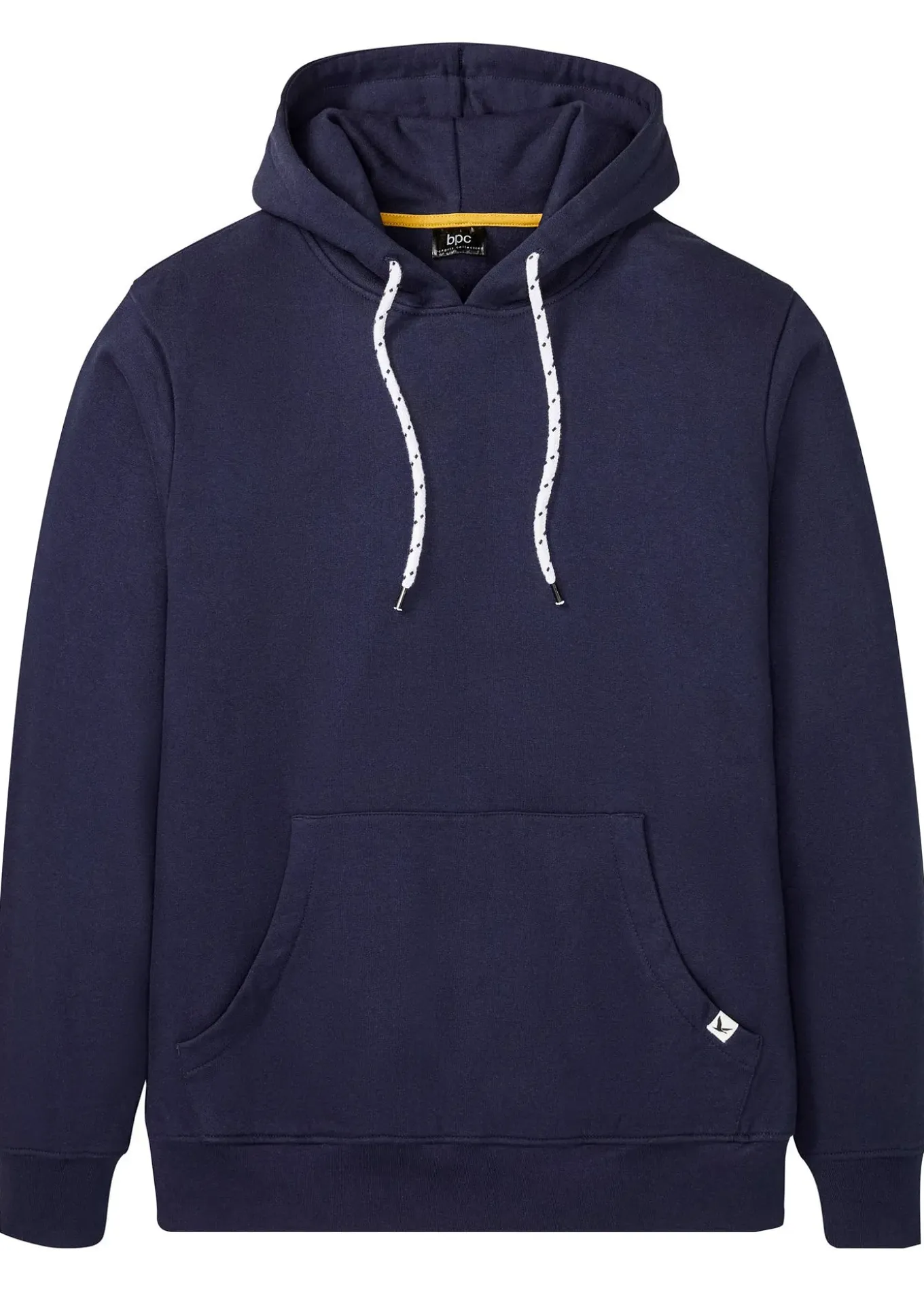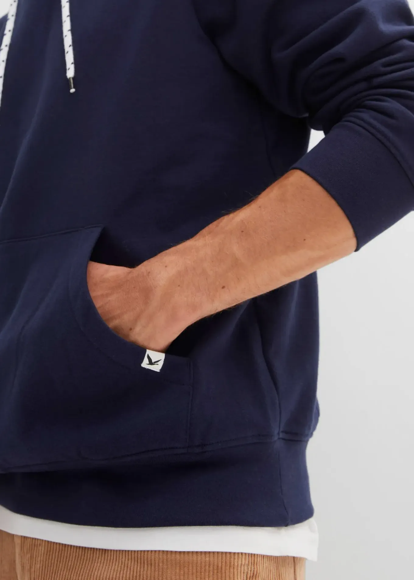 Joli sweat à capuche coupe confort avec une poche kangourou devant et une petite étiquette pliée