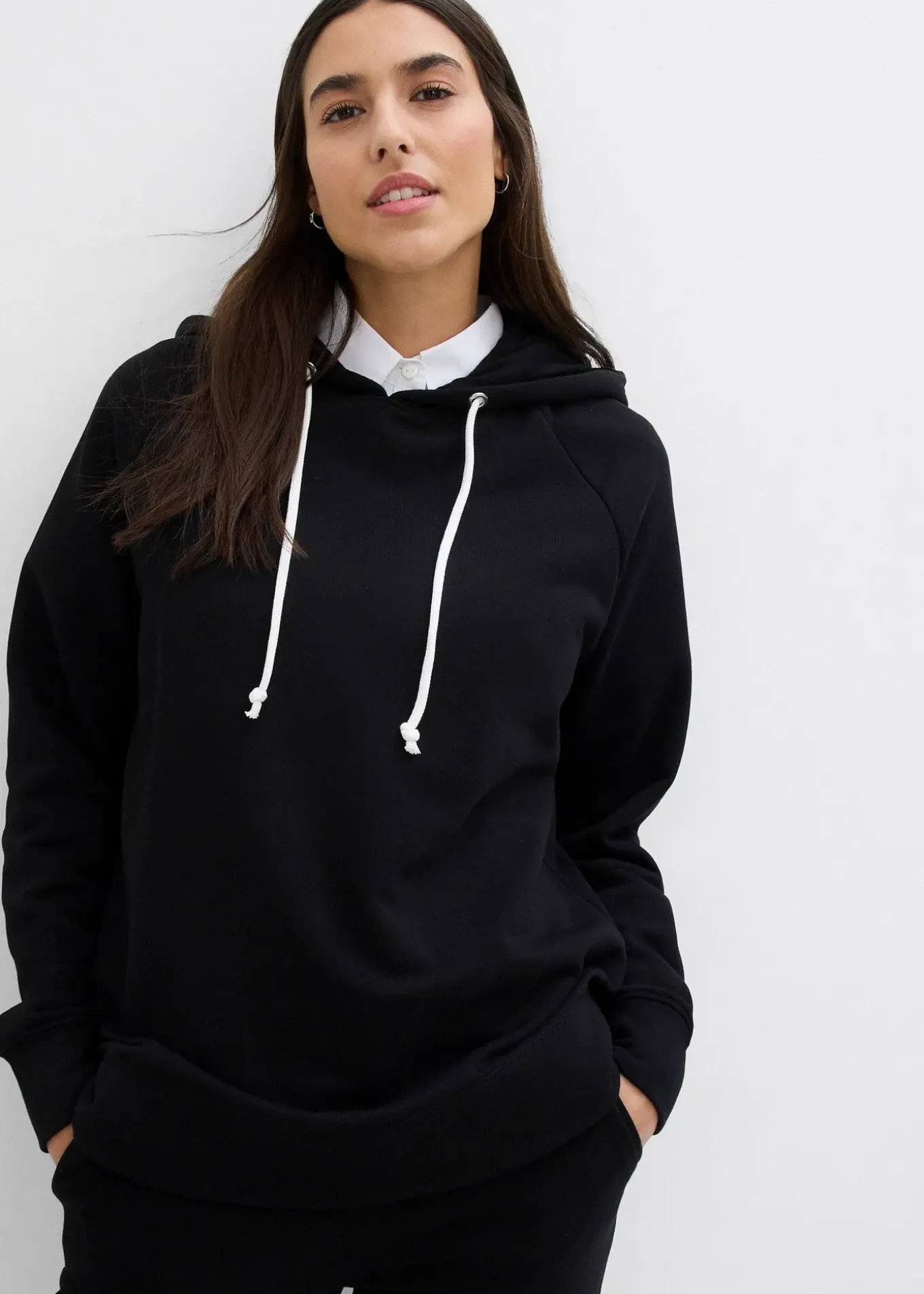 Sweat-shirt à capuche confortable, long dans le dos. Long. env. 76 cm, lavage machine.