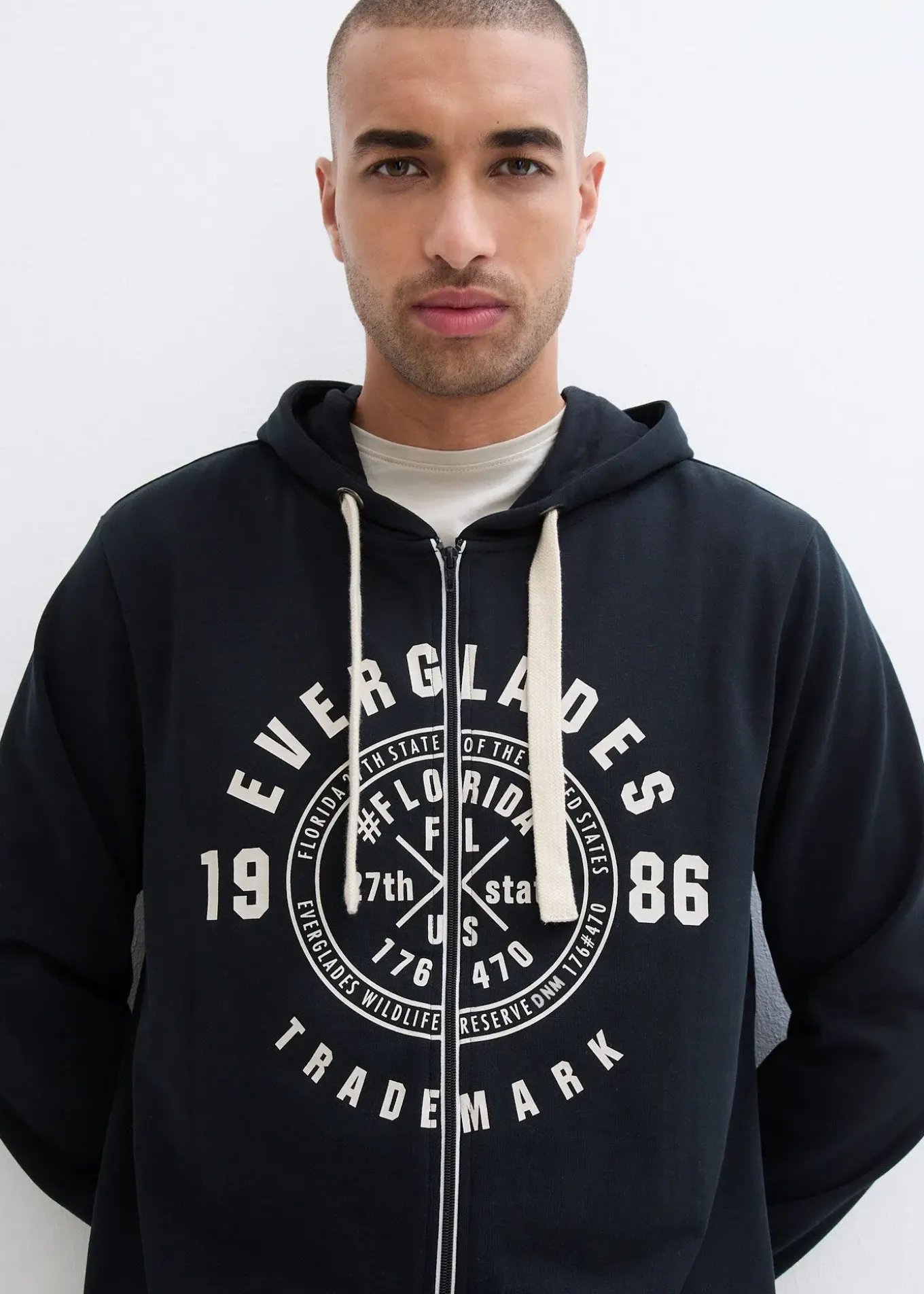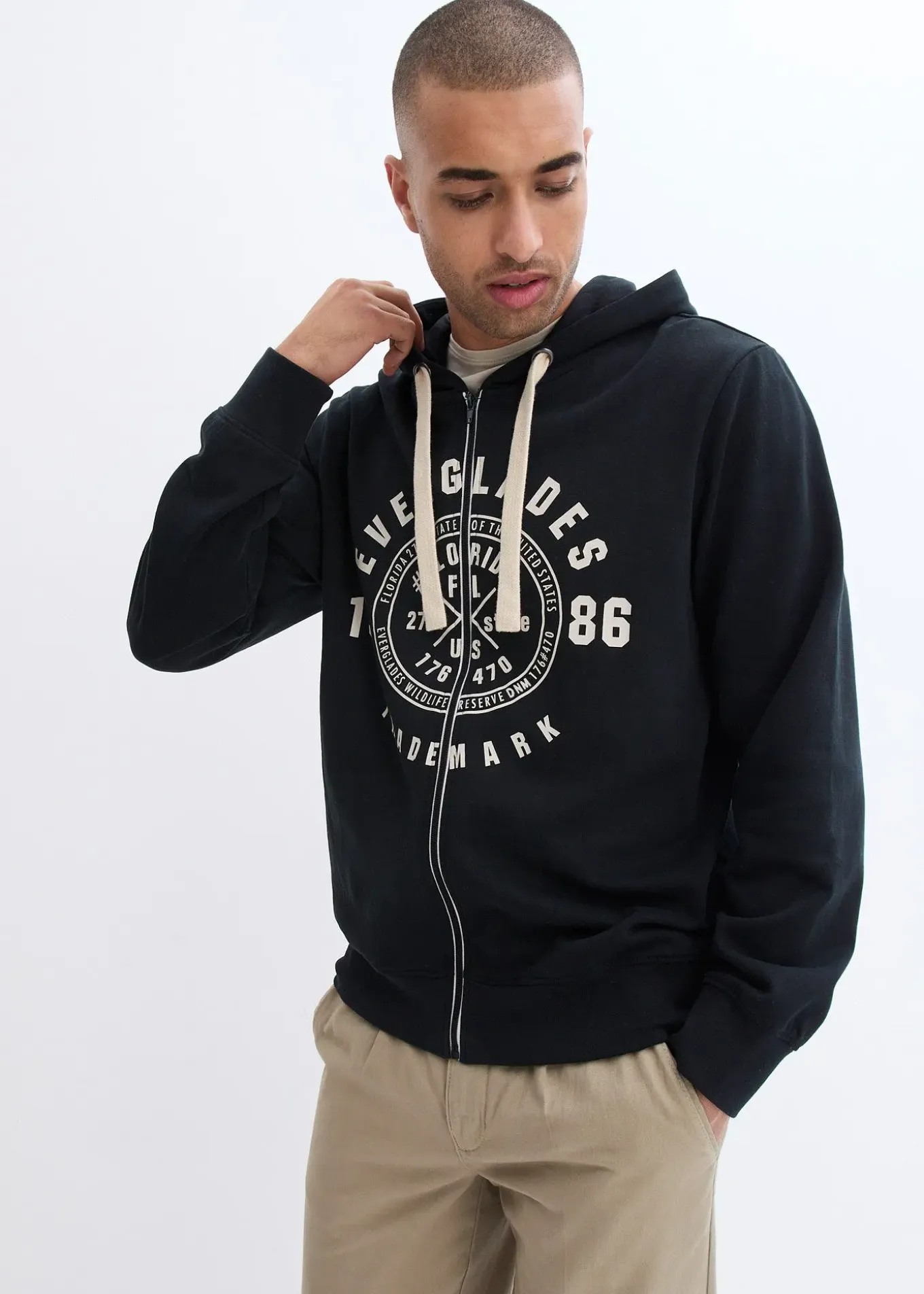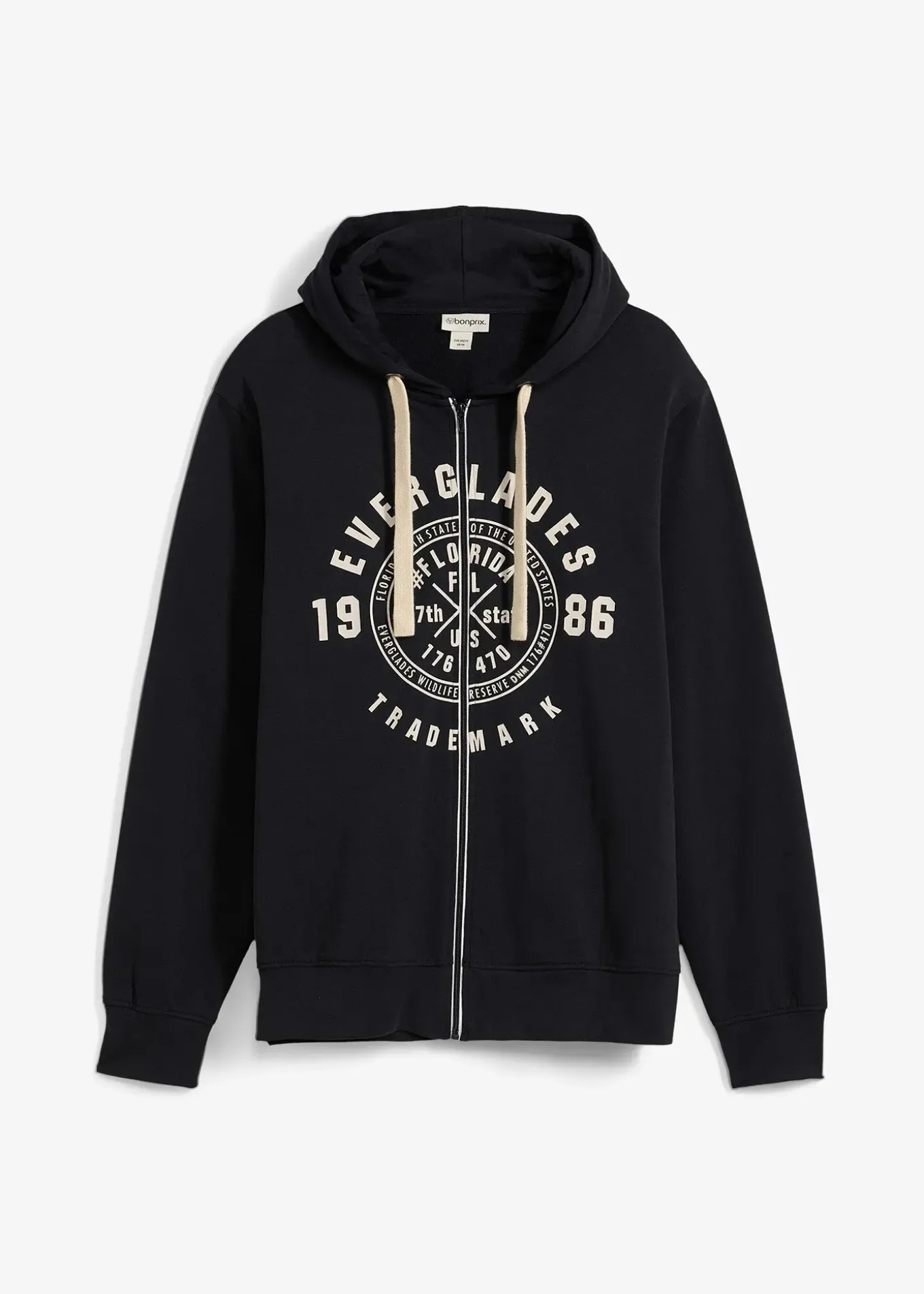 Sweat zippé tendance coupe confort avec un grand imprimé sur la poitrine, lavage machine