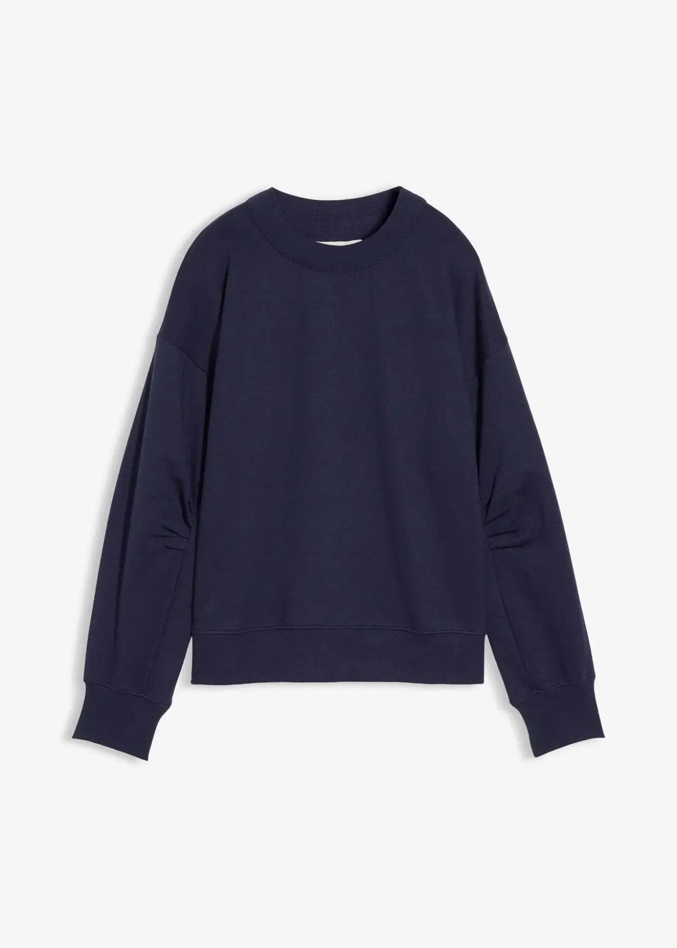 Sweat-shirt en coton à large col rond côtelé et pinces aux coudes