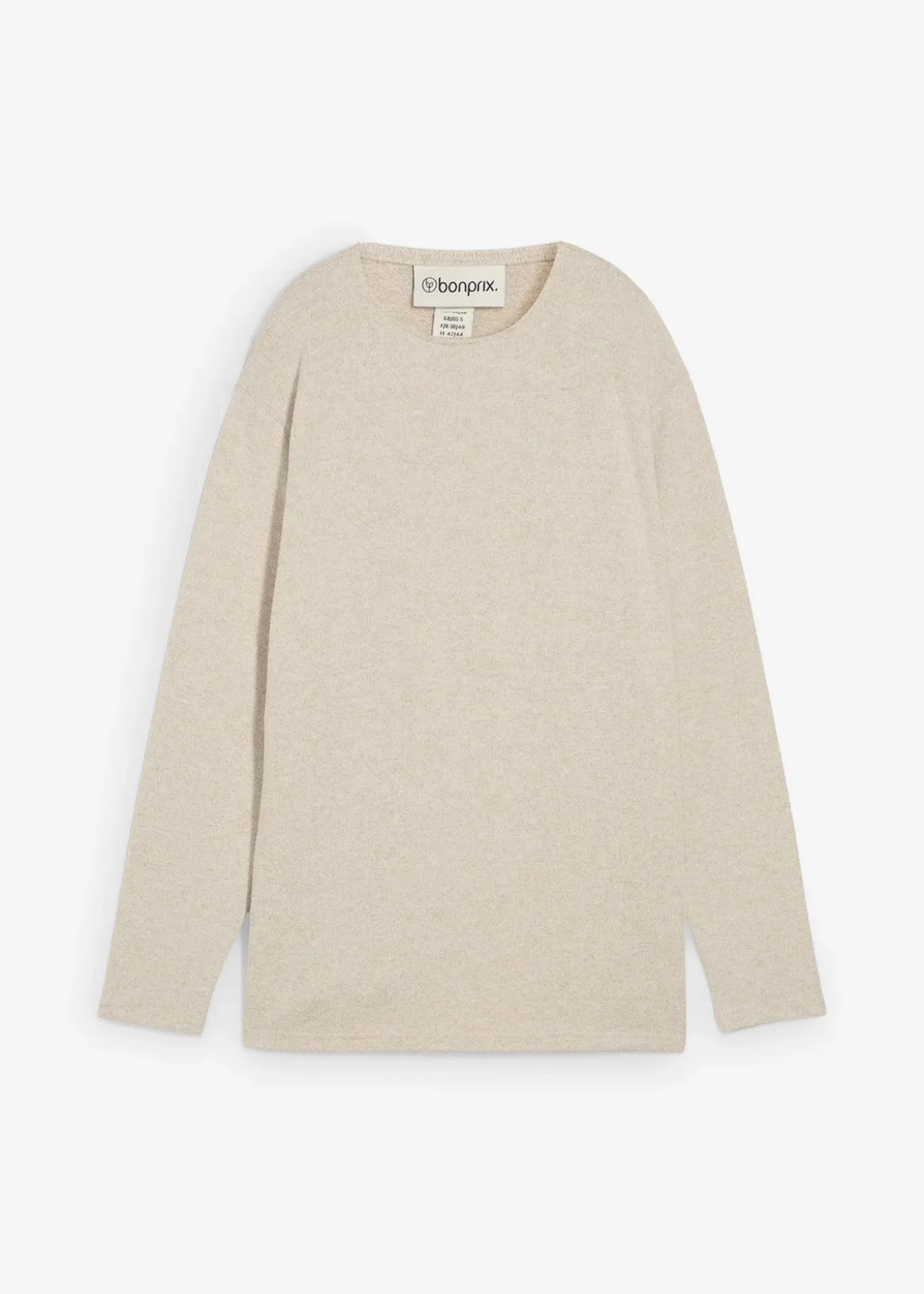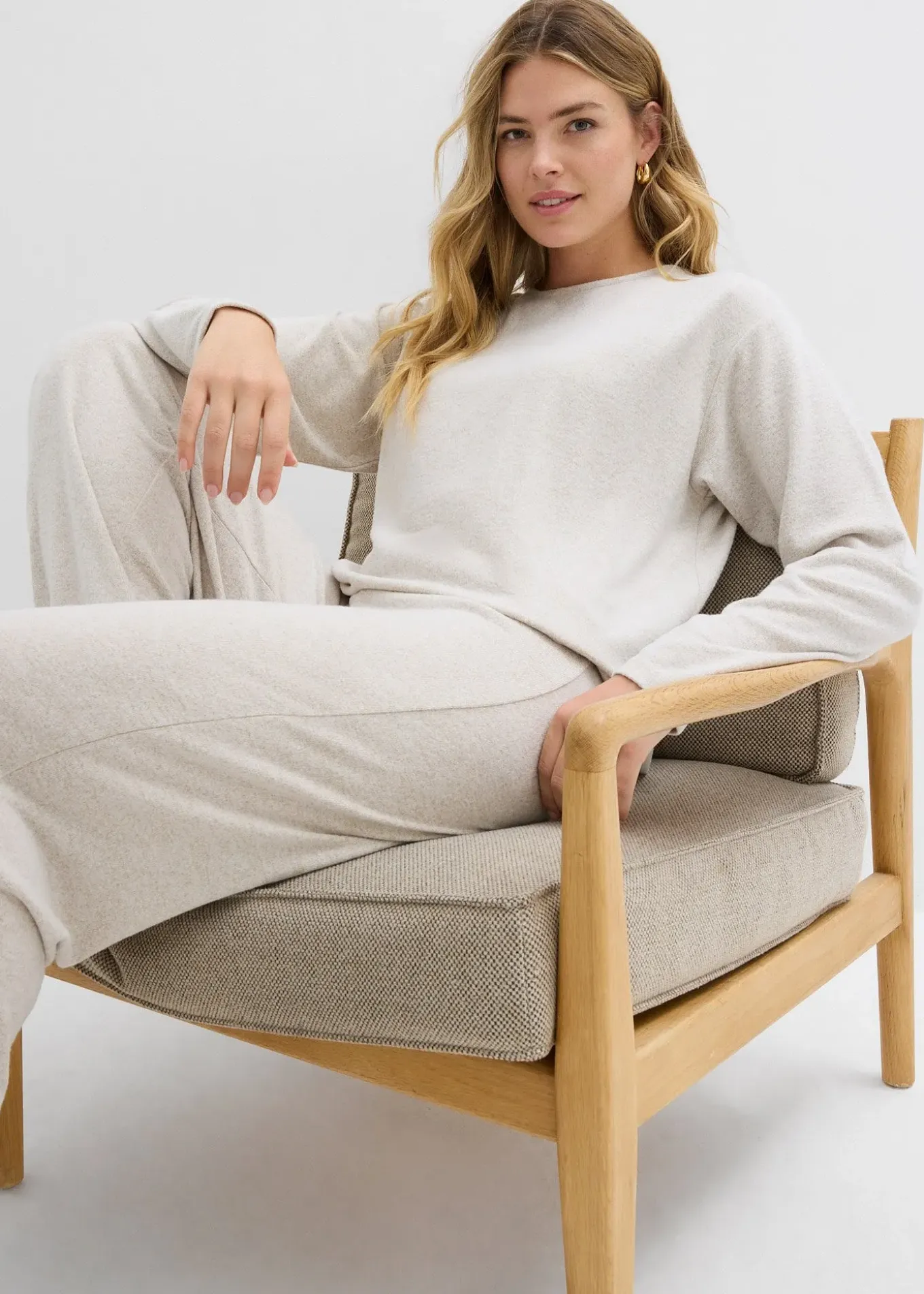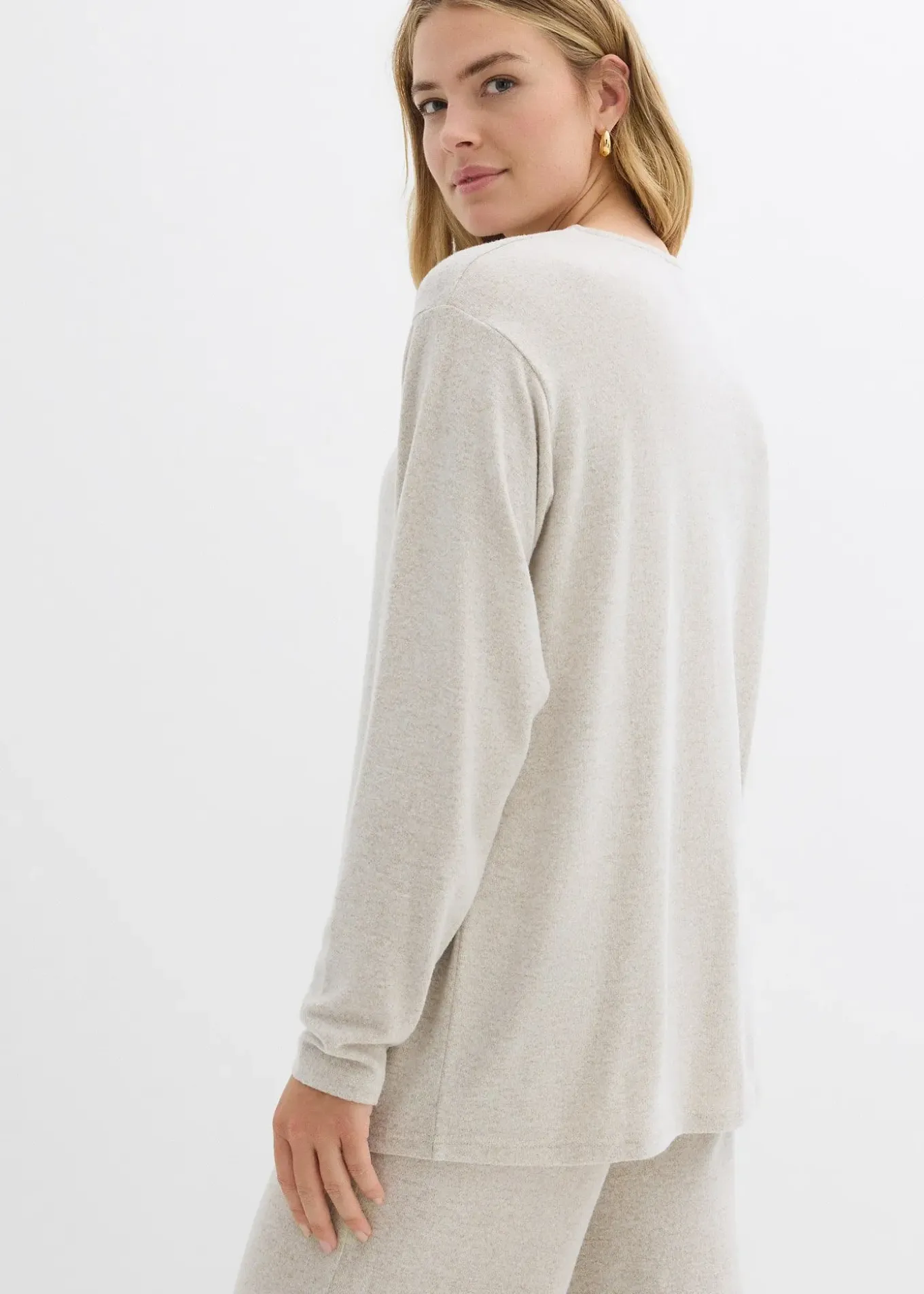 Sweat-shirt ample, longueur hanches avec épaules descendues.
