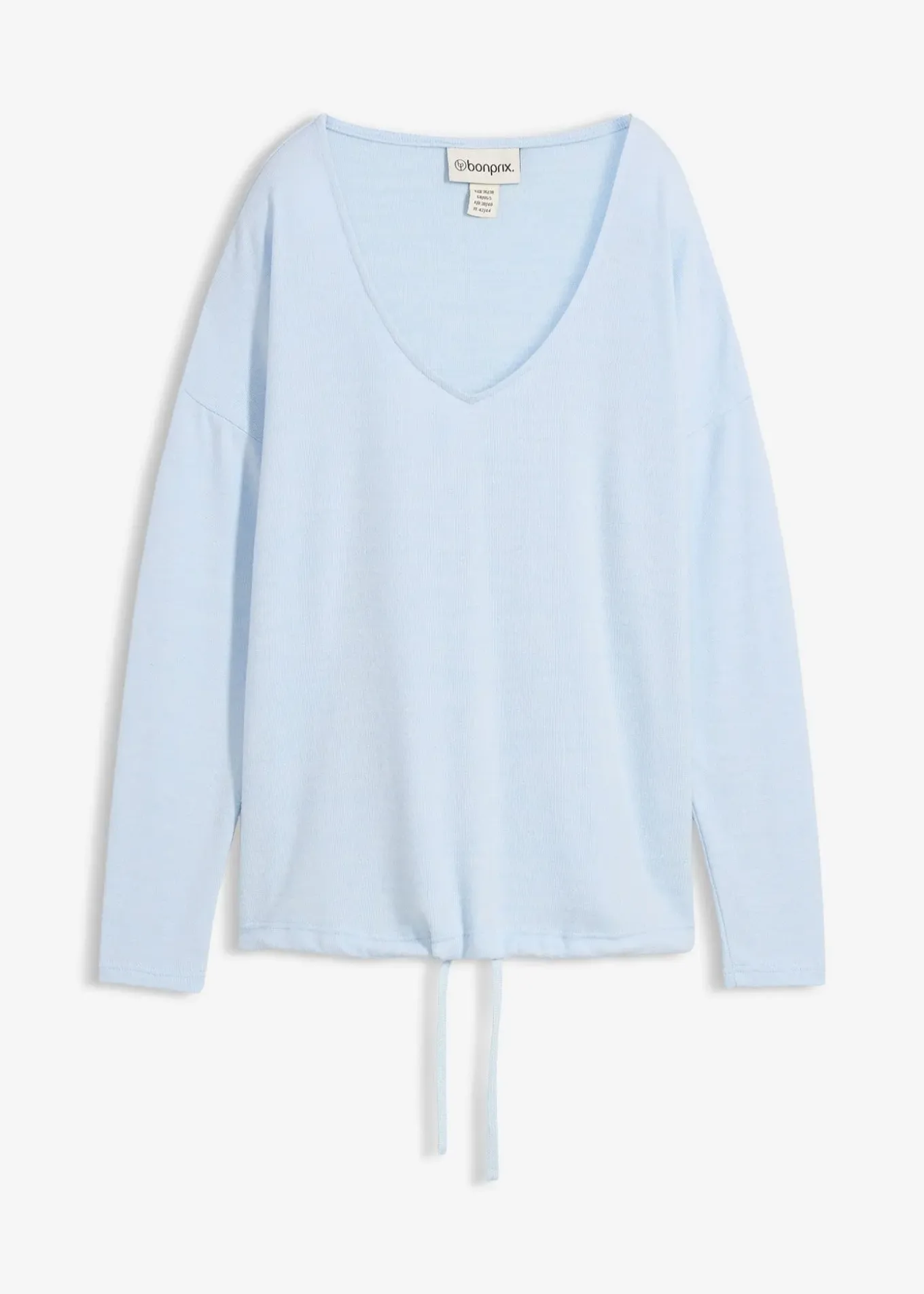 Sweat ample à col V et capuche. Base confortable, réglable par un cordon coulissant.