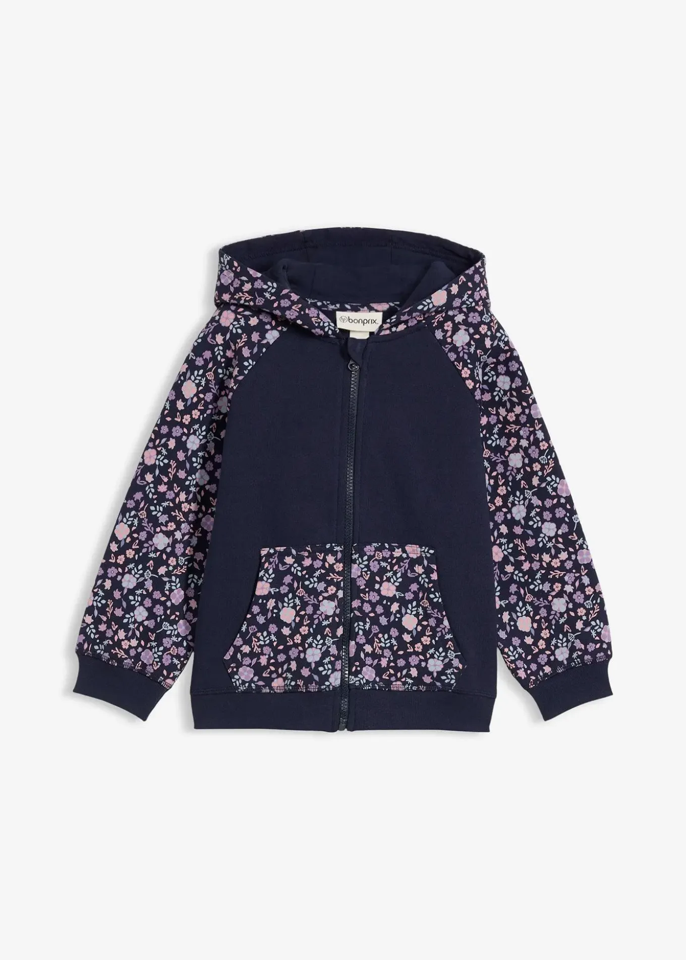 Sweat zippé oversize avec imprimé allover, poche kangourou et capuche
