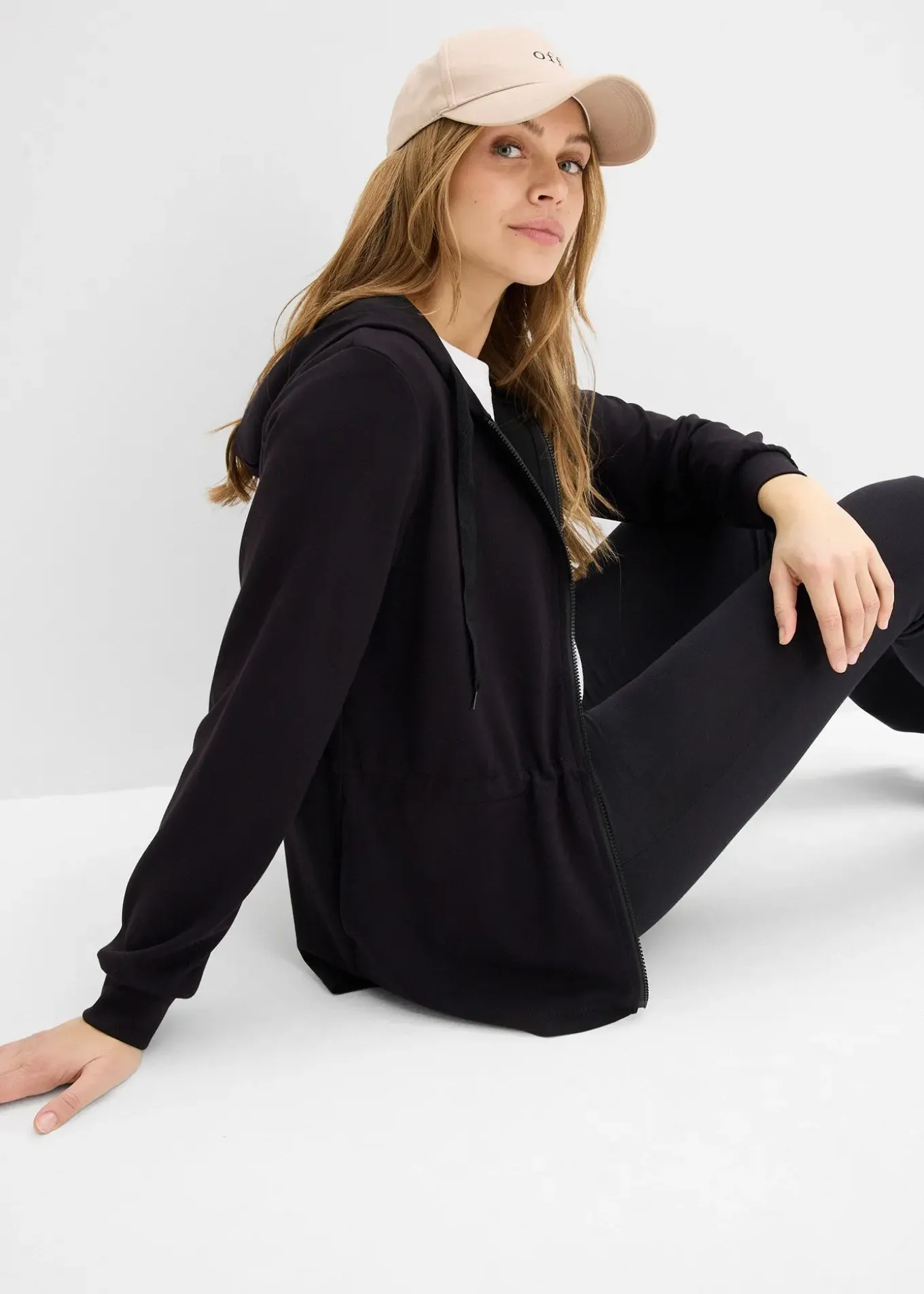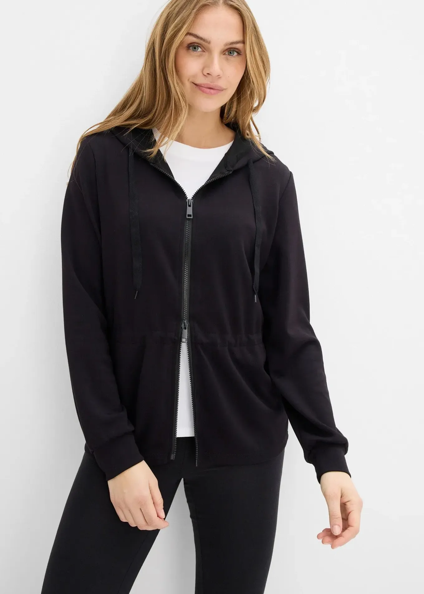 Sweat en tissu néoprène avec fermeture zippée double sens et base plus longue derrière