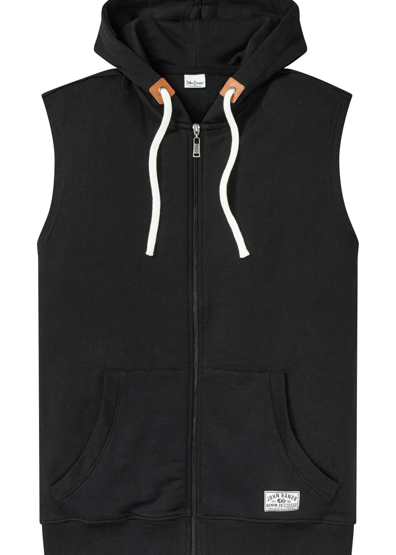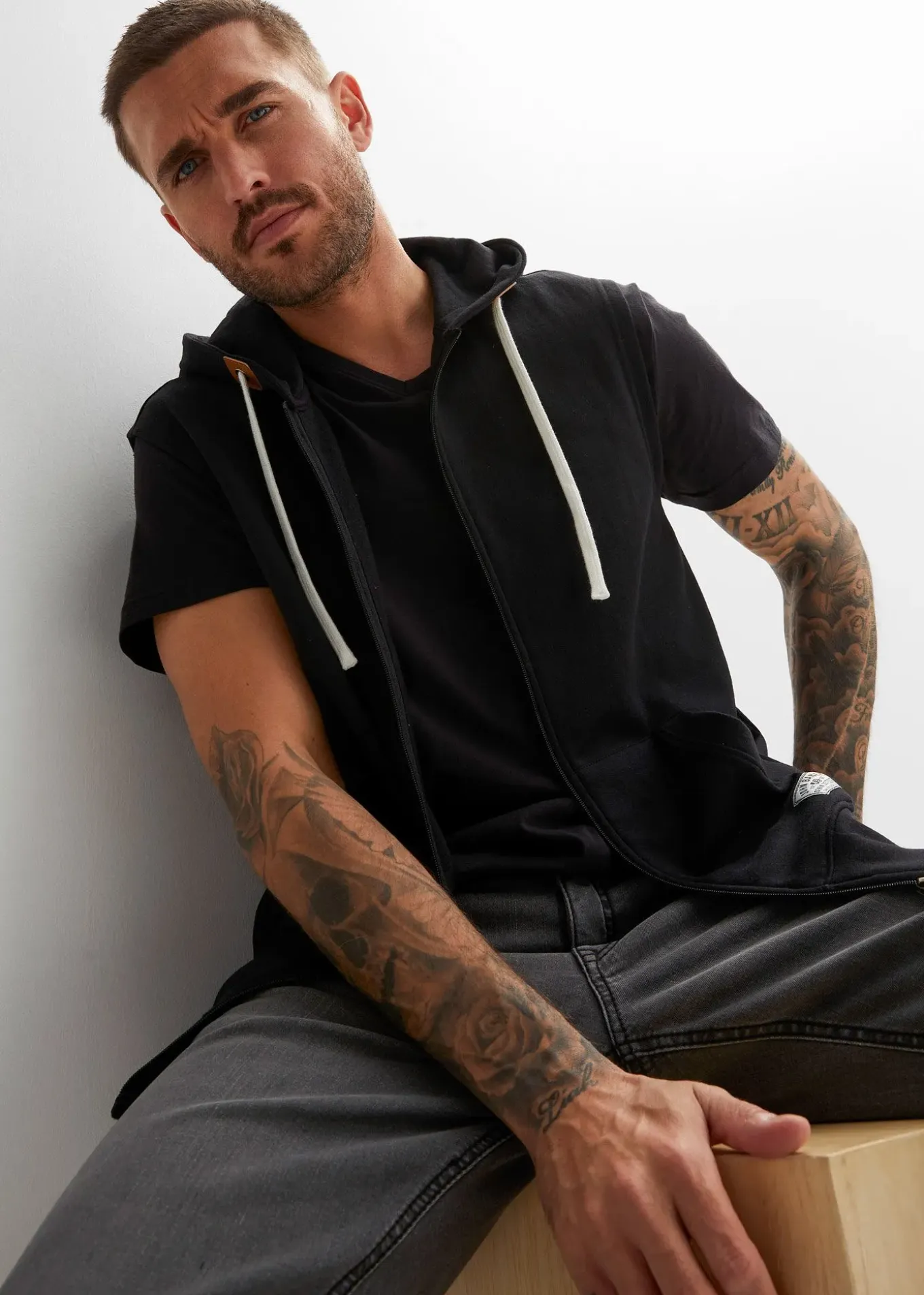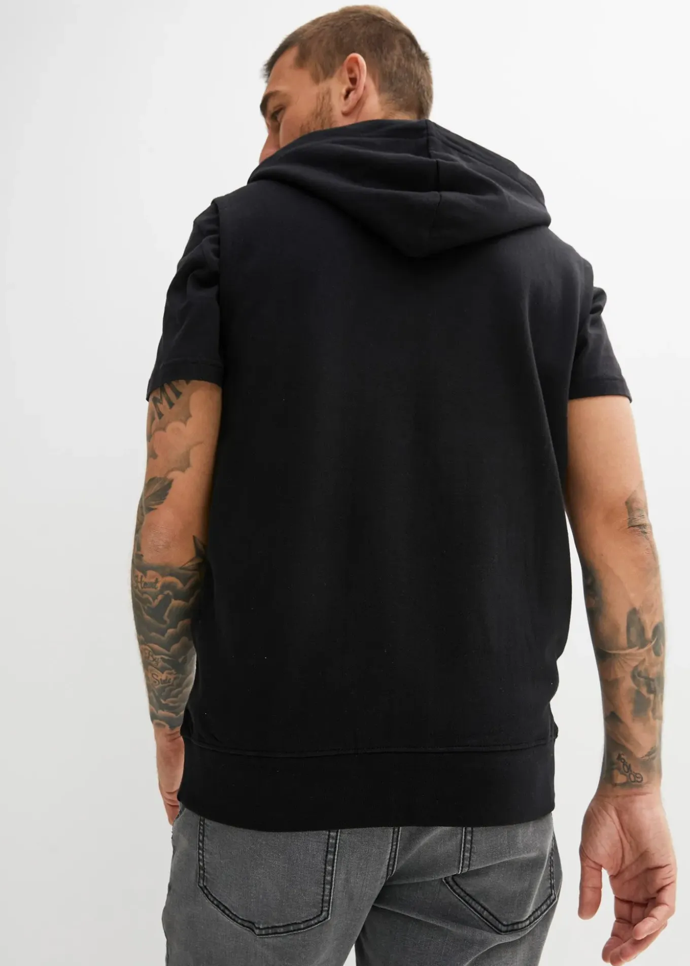 Sweat zippé sans manches tendance avec capuche et 2 poches, intérieur gratté doux