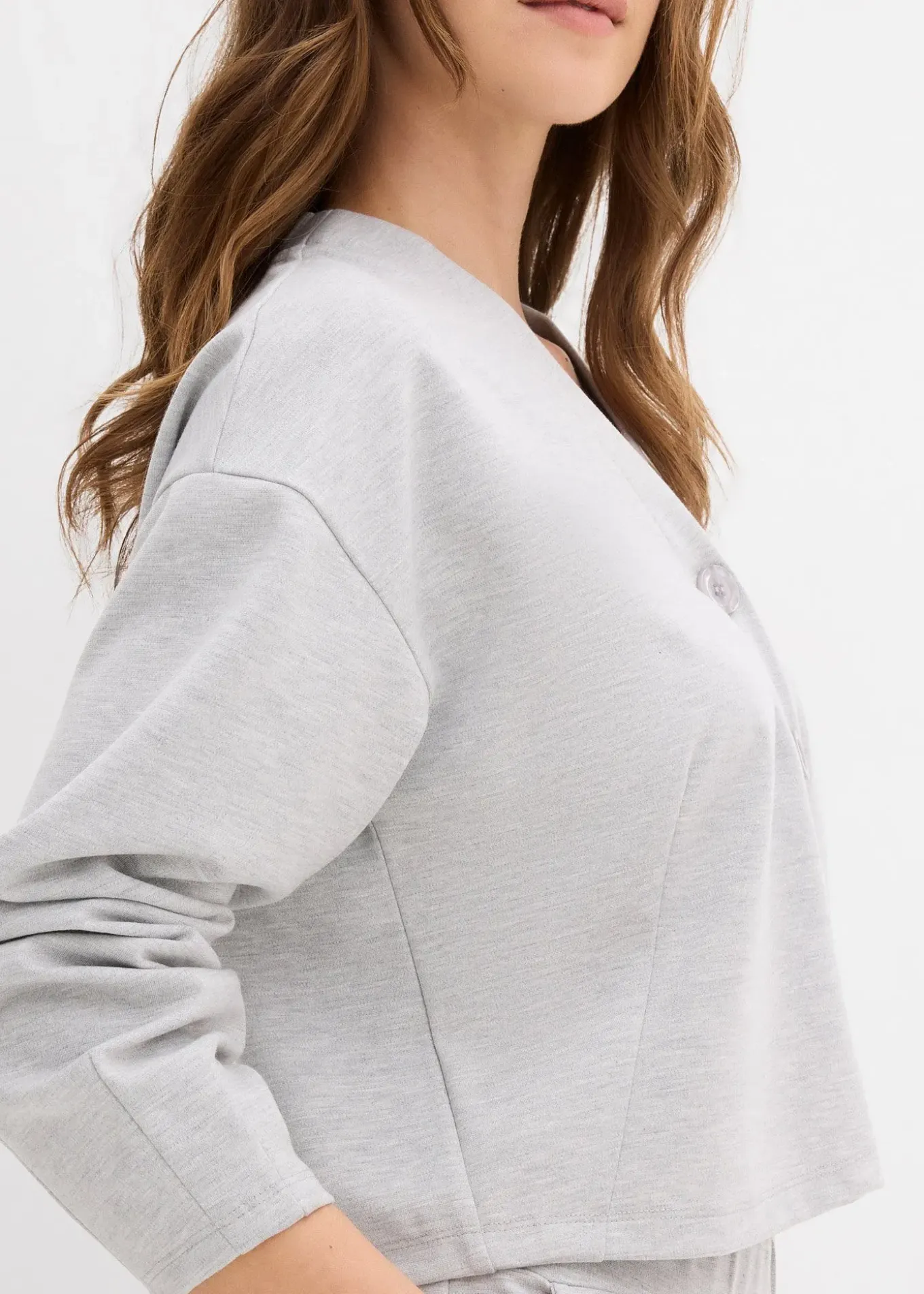 Sweat zippé court avec pinces assorties et boutons sur le devant