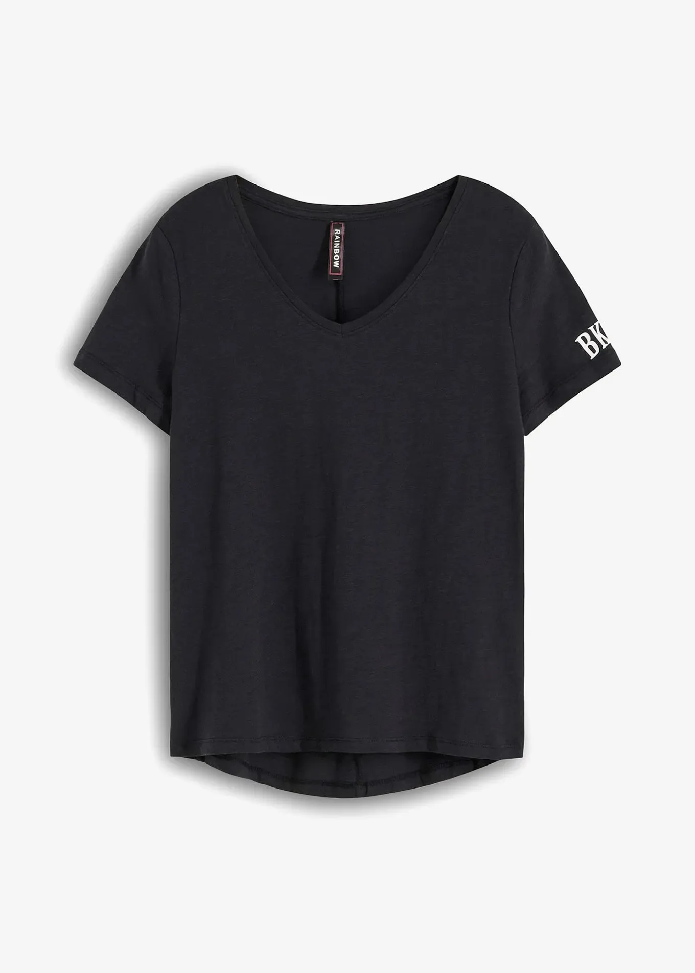 T-shirt ample et décontracté avec imprimé au dos, sur la couture latérale et sur la manche droite. Base arrondie, grand col V et dos plus long pour un look tendance.
