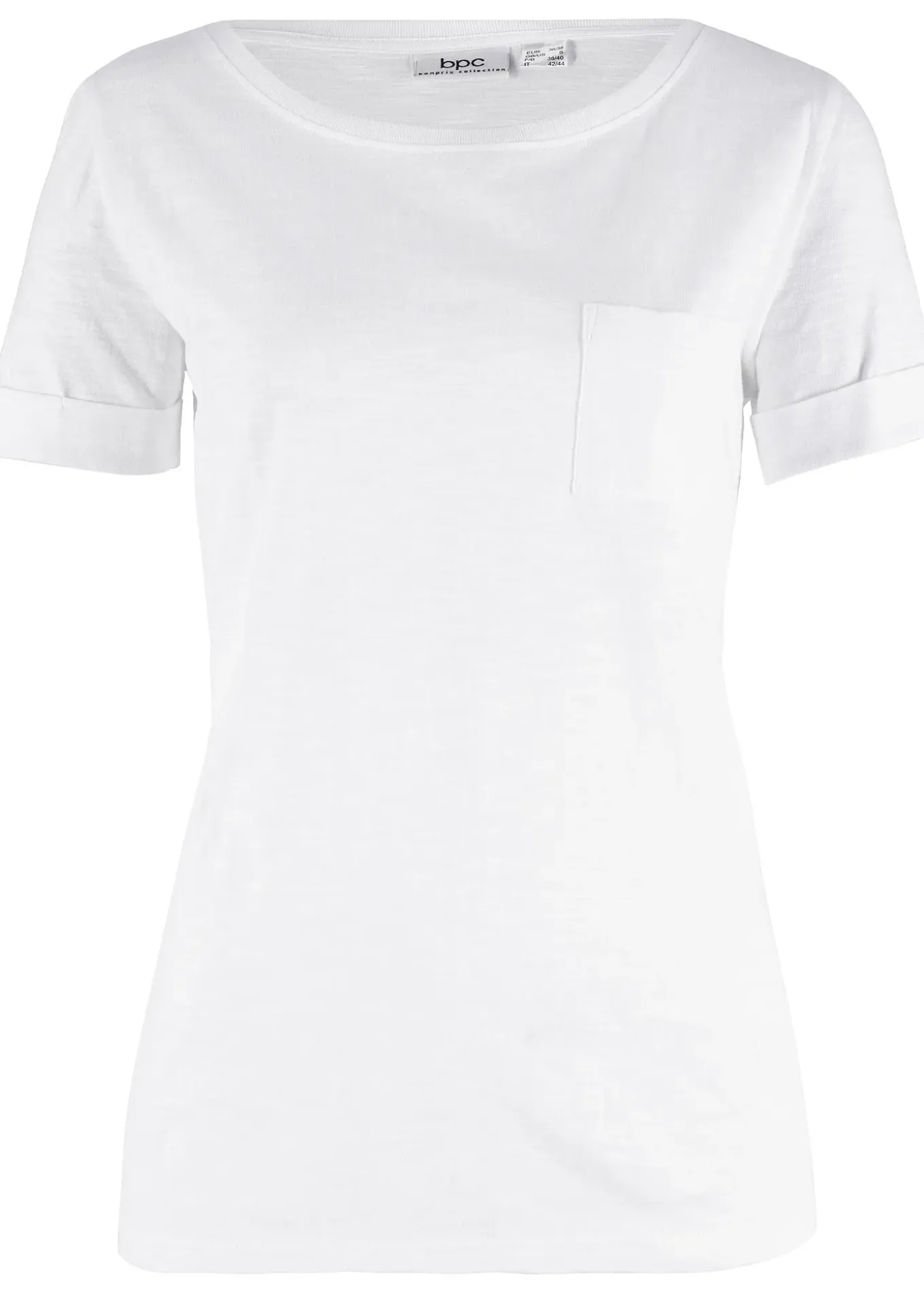 T-shirt flatteur en coton fil flammé avec poche poitrine