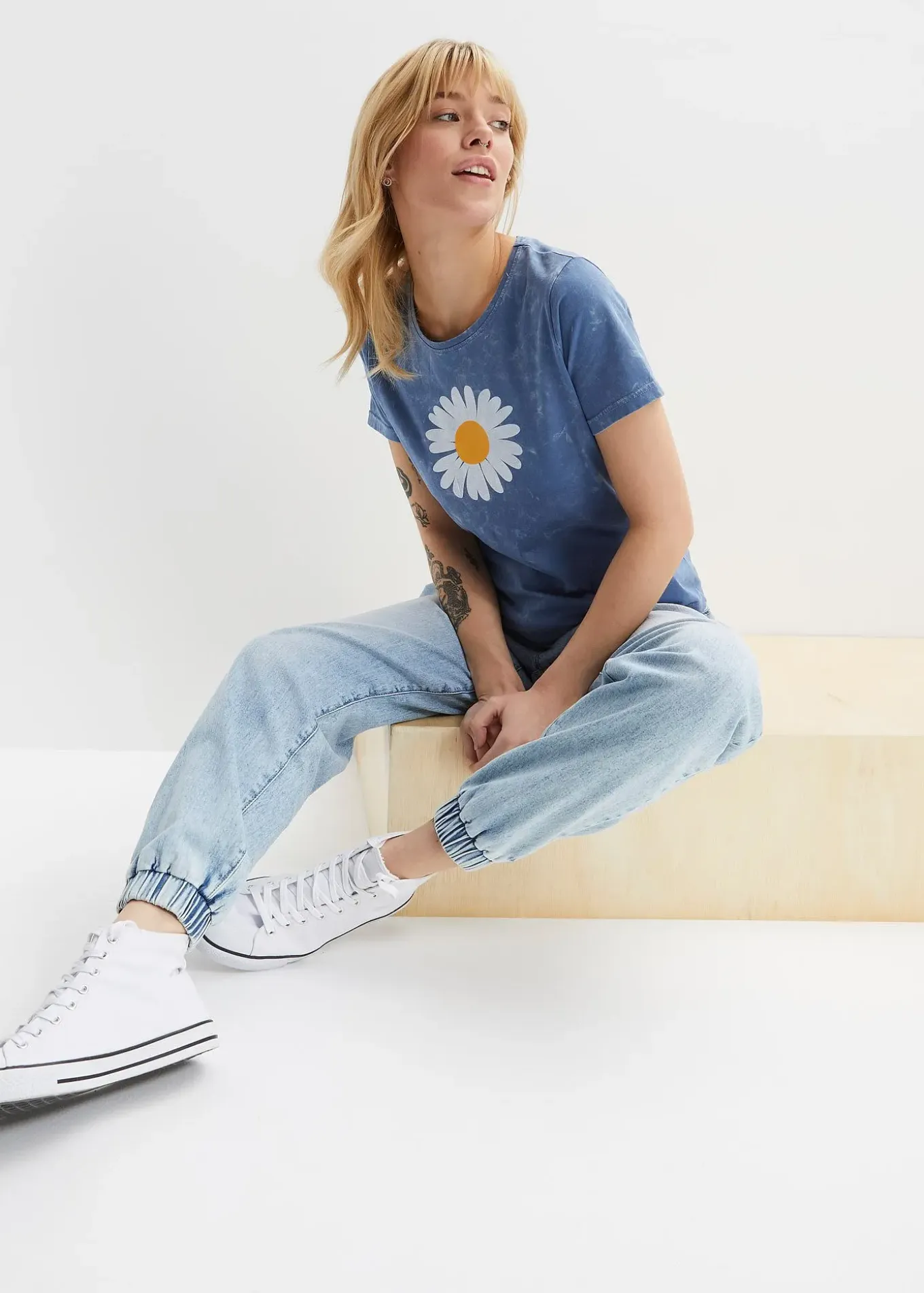 Joli T-shirt avec imprimé pâquerette et effet moonwash