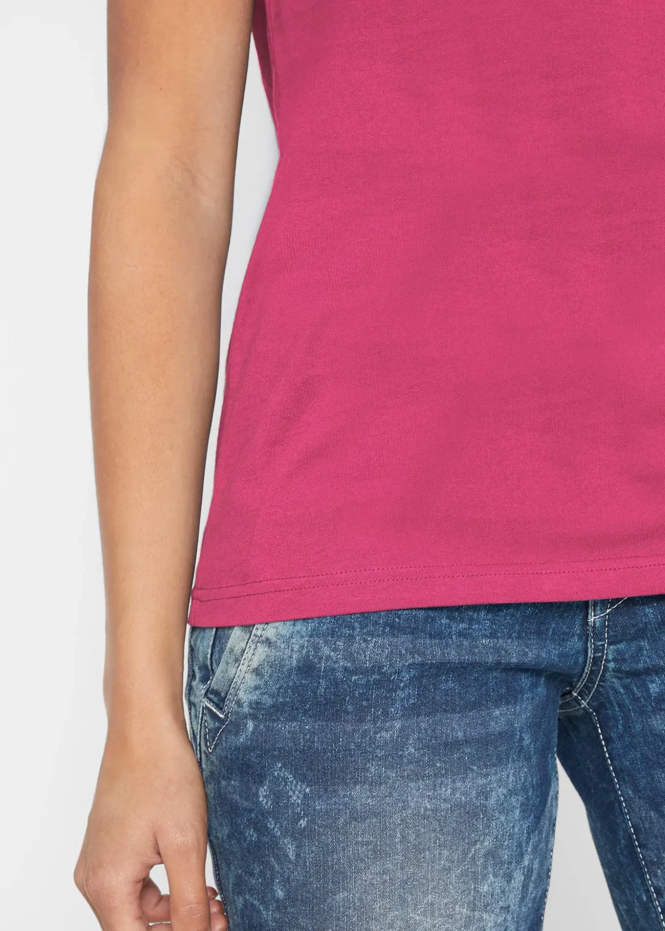 T-shirt à manches courtes tendance de la marque John Baner, coupe carrée originale, col rond, emmanchures à revers.