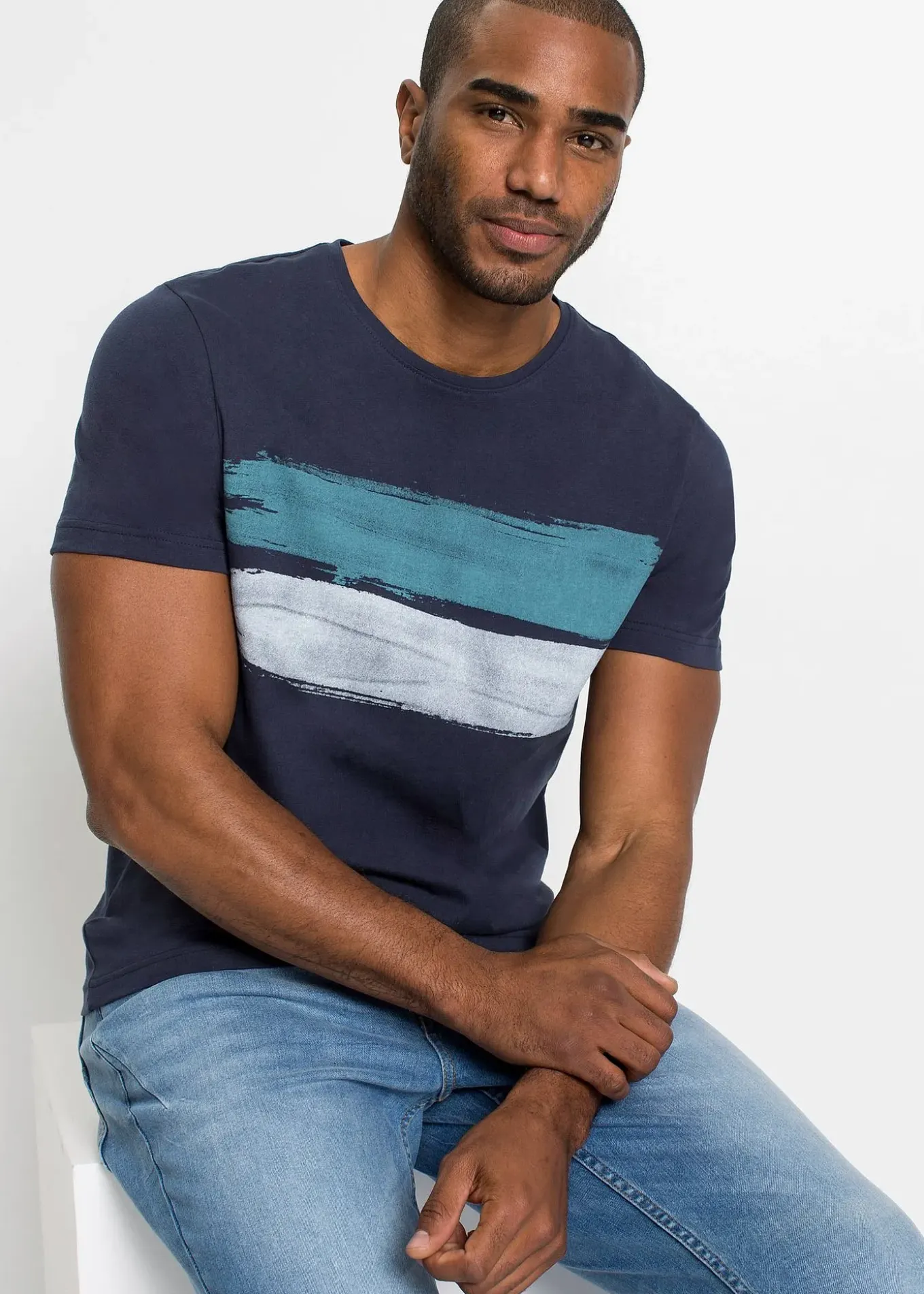 T-shirt homme John Baner à imprimé sur le devant. Col rond et coupe regular décontractée. Se porte les manches retroussées avec un jean pour un look casual.