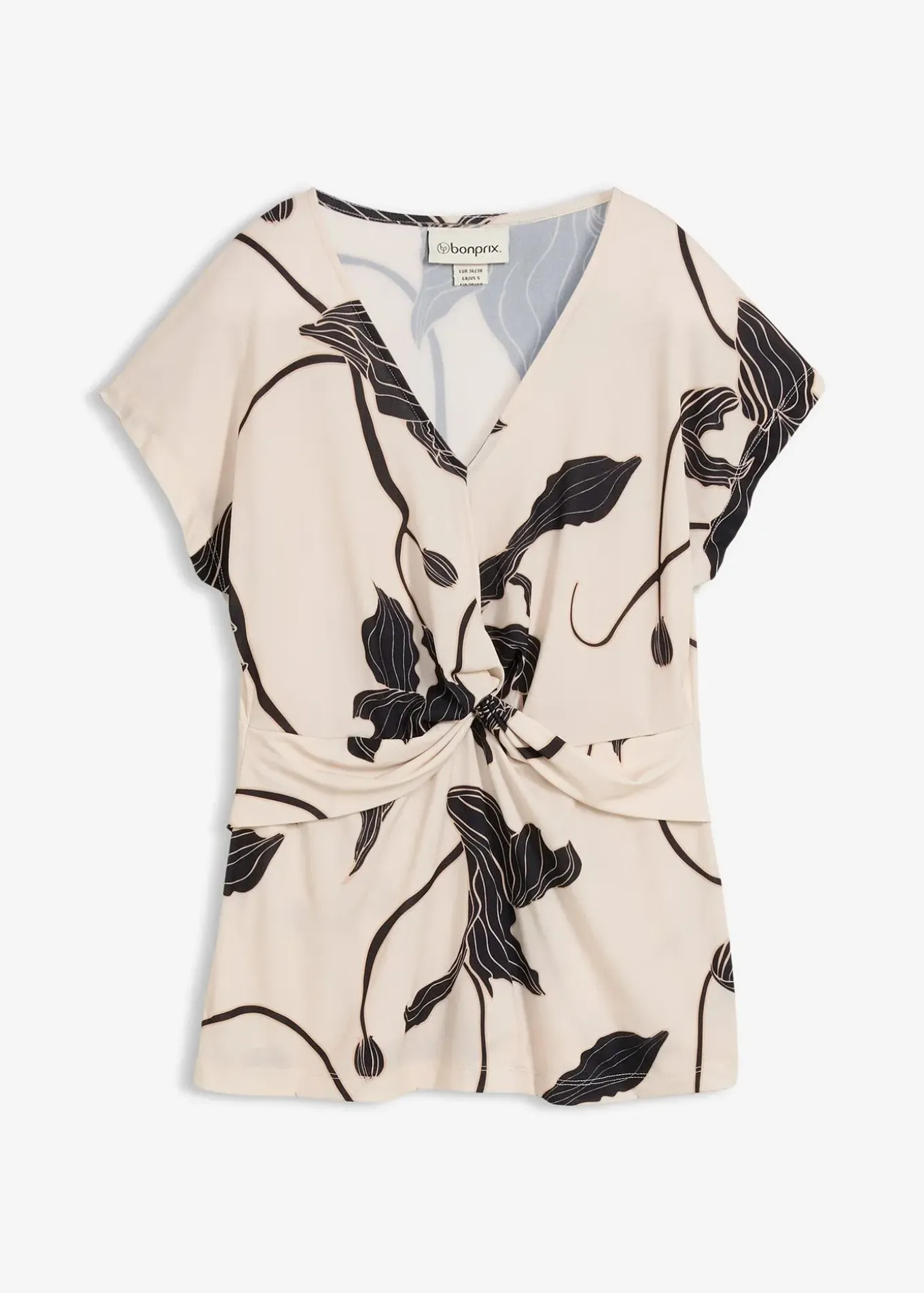 T-shirt féminin en jersey légèrement brillant avec drapé devant à la taille