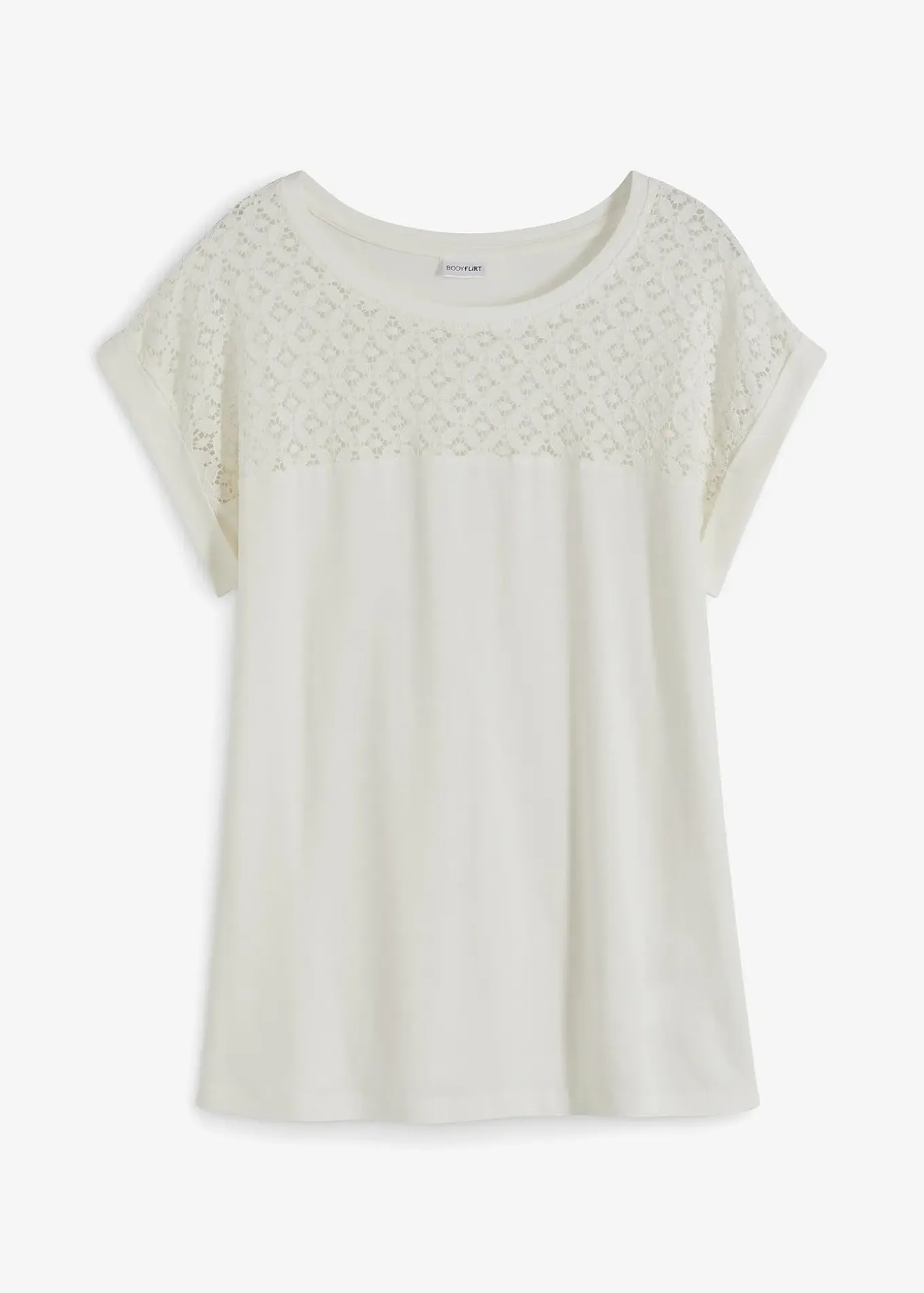 T-shirt extravagant de BODYFLIRT. Ce T-shirt est agrémenté de dentelle sur la partie supérieure. Long. env. 64 cm.